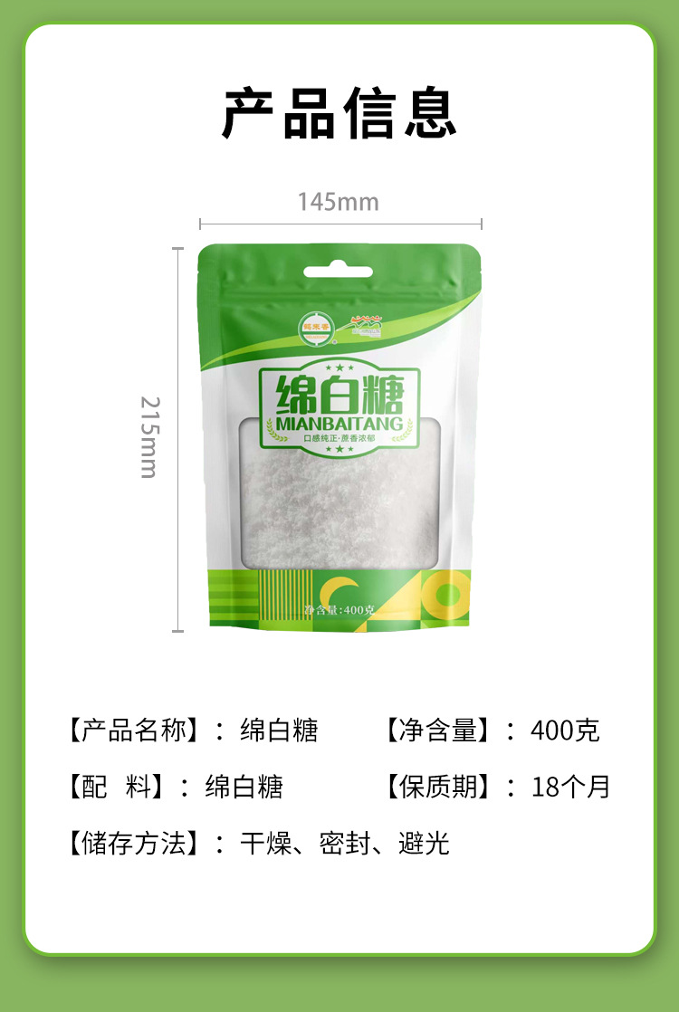 「蔗香浓郁」绵白糖400克袋 甘蔗糖烘焙咖啡食用糖粮油米面