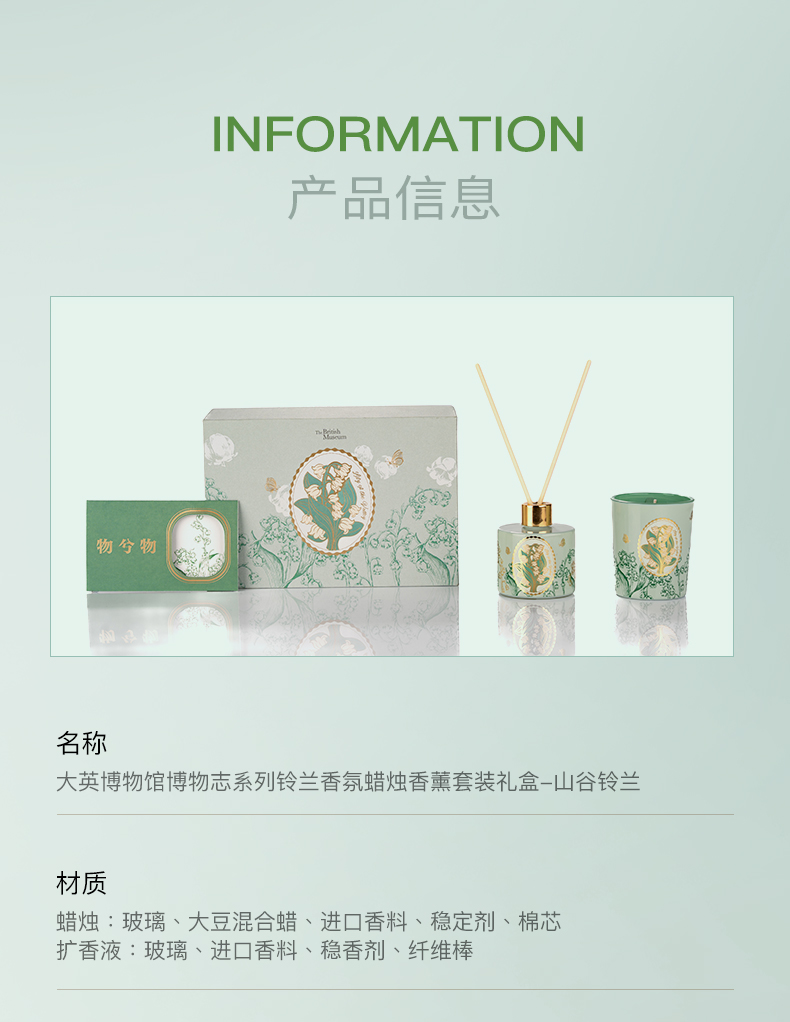 大英博物馆 博物志系列 铃兰香氛蜡烛香薰套装礼盒 山谷铃兰