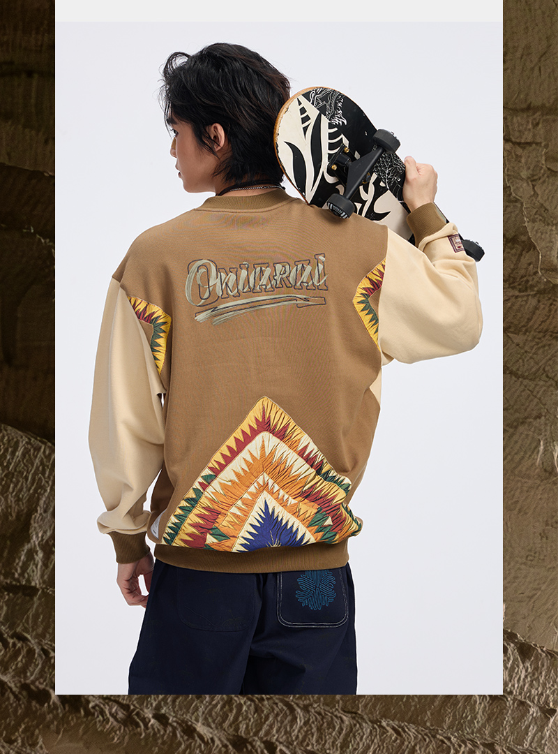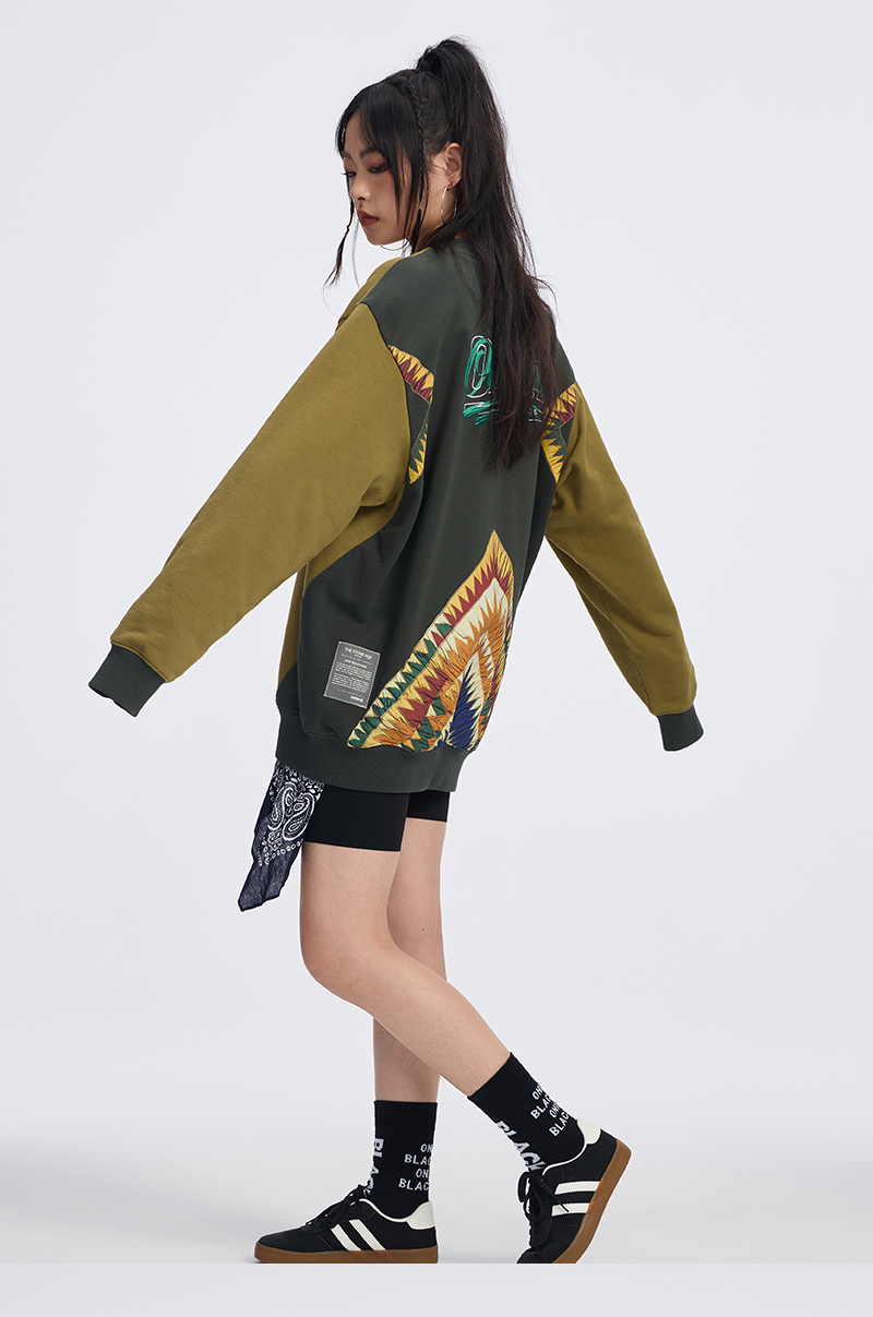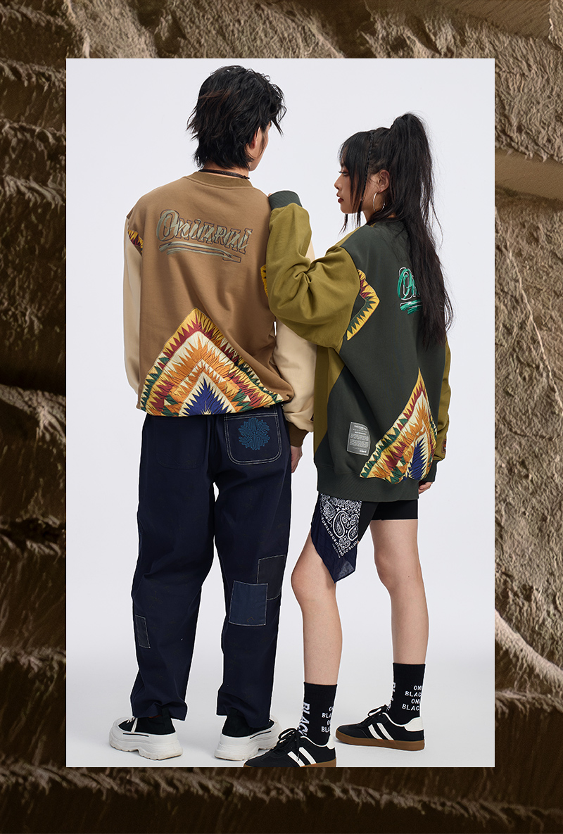 ONIARAI/鬼洗 史前部落织物印綉花拼布卫衣 A240012