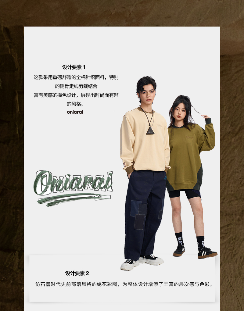 - ONIARAI品牌以鬼洗、地藏小王、日本蓝三个系列组成,鬼洗拥有独特的品牌文化图腾、夸张的图案设计、个性化的搭配,表达出潮人自我格调,制造话题、创造独特个性与生活态度。