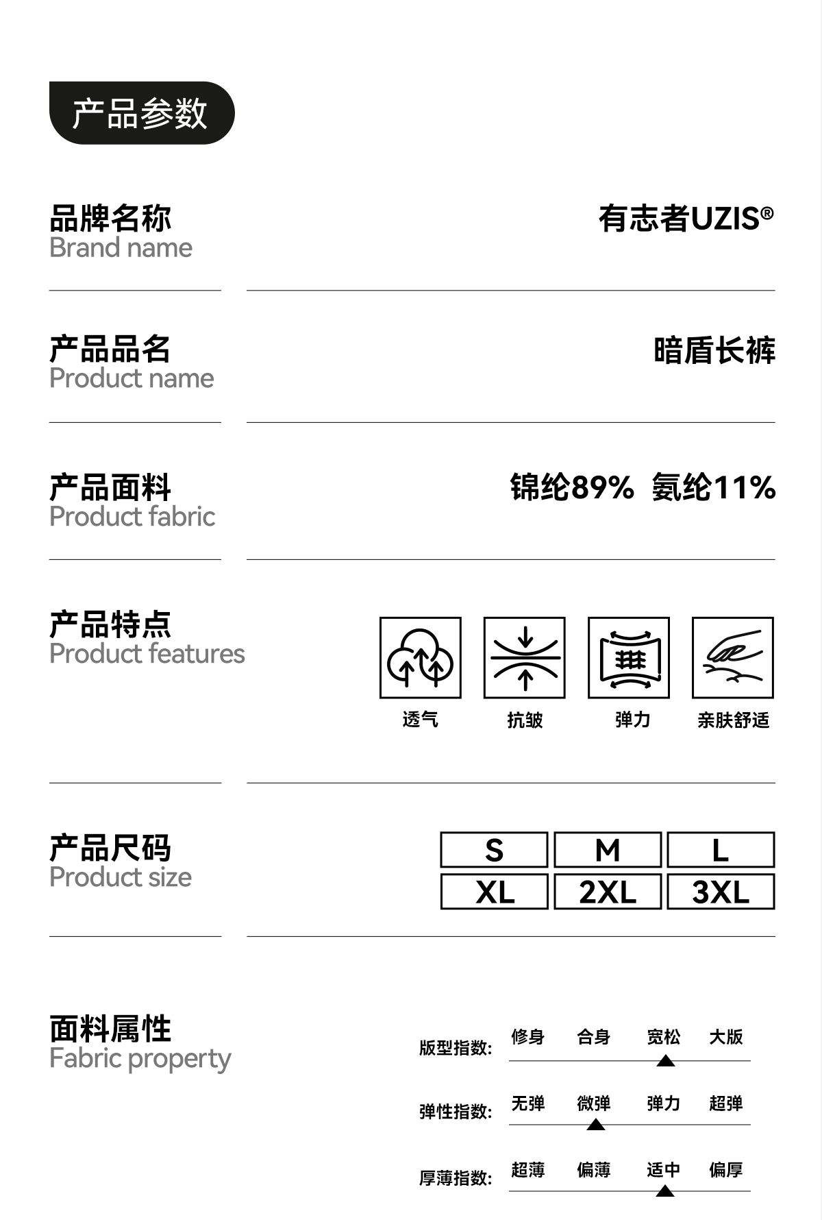 有志者UZIS梭织运动长裤男户外休闲新款篮球训练宽松直筒裤子暗盾