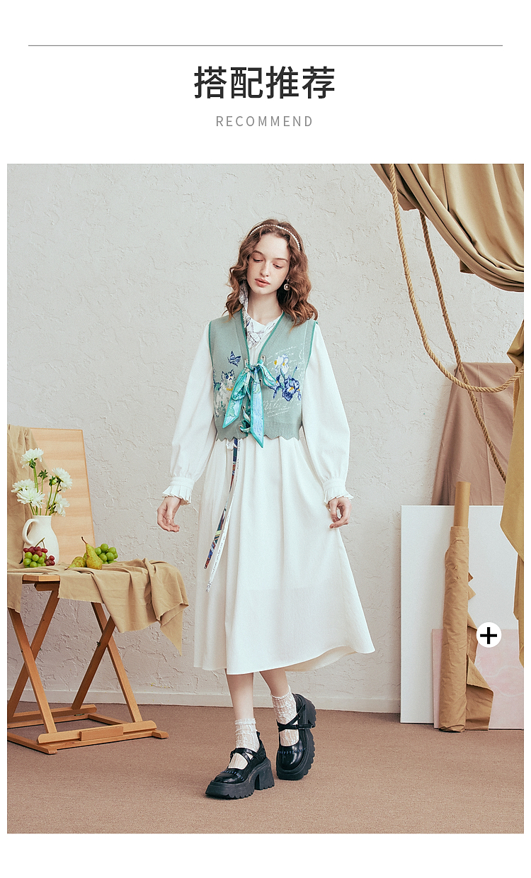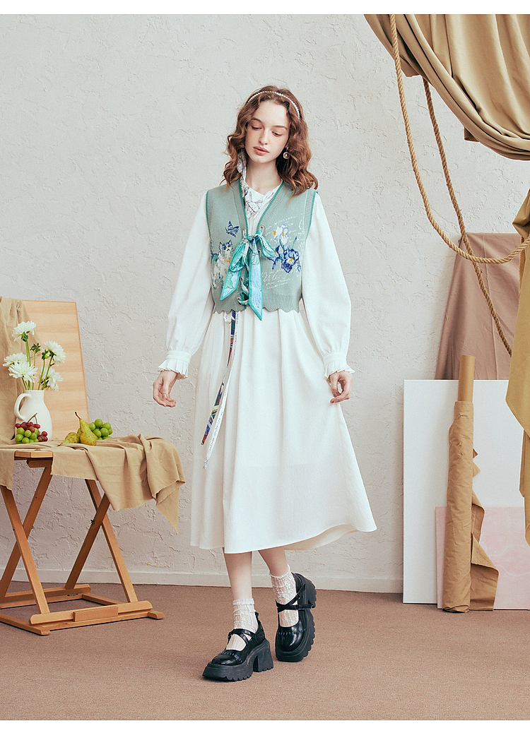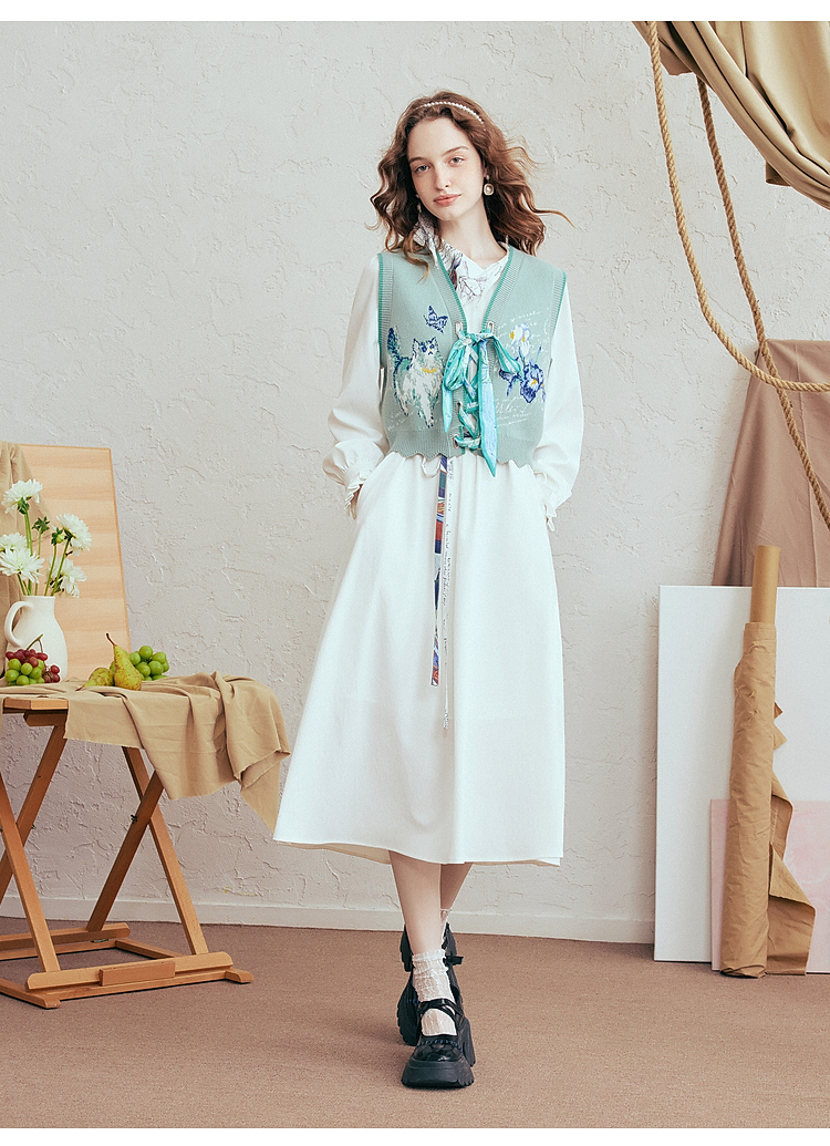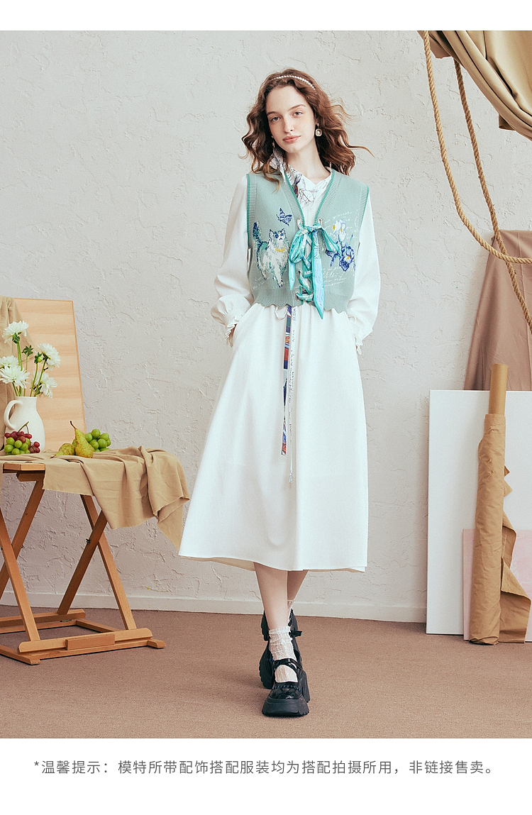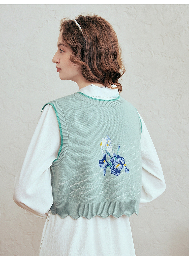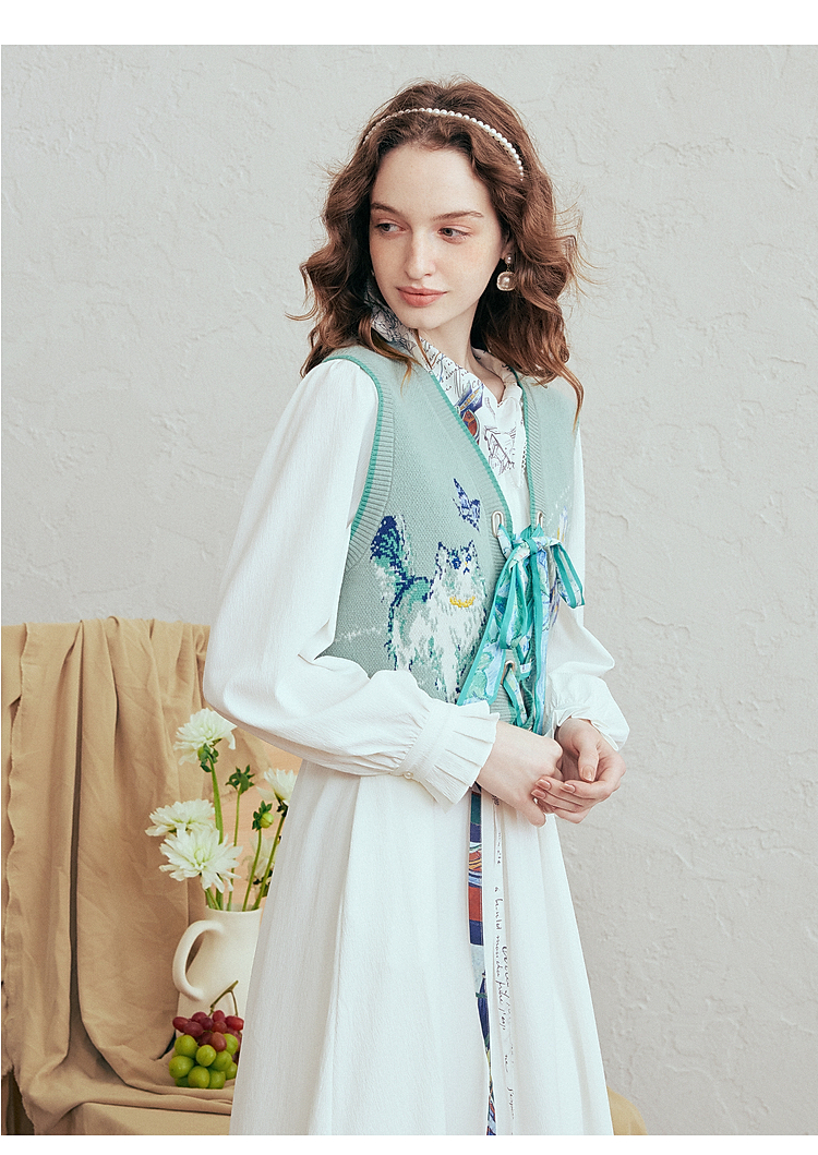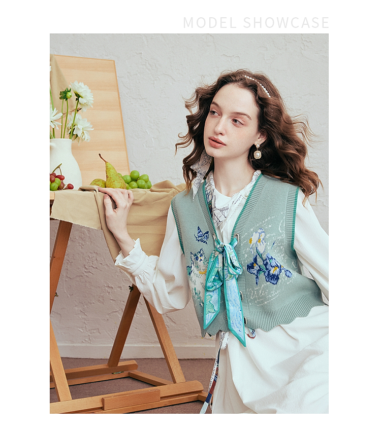 两三事梵高文艺青野伴游2026春季新款小清新印花绑带提花针织衫女