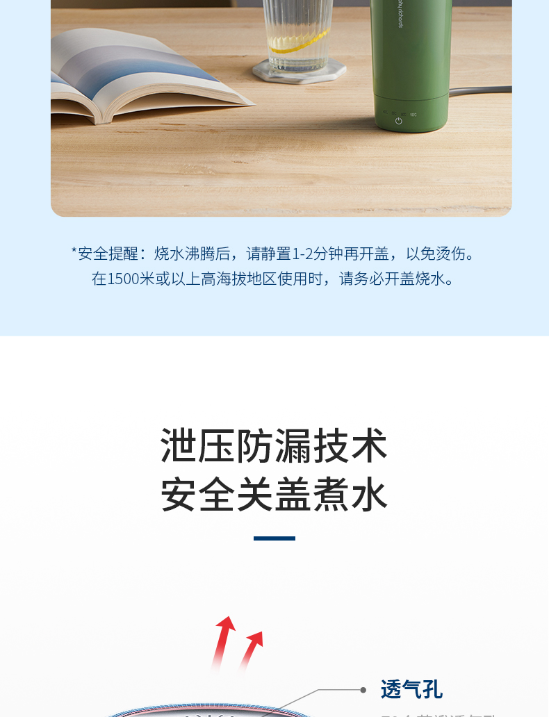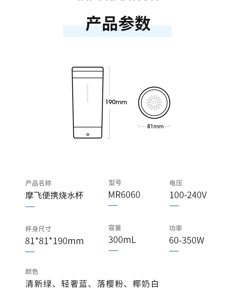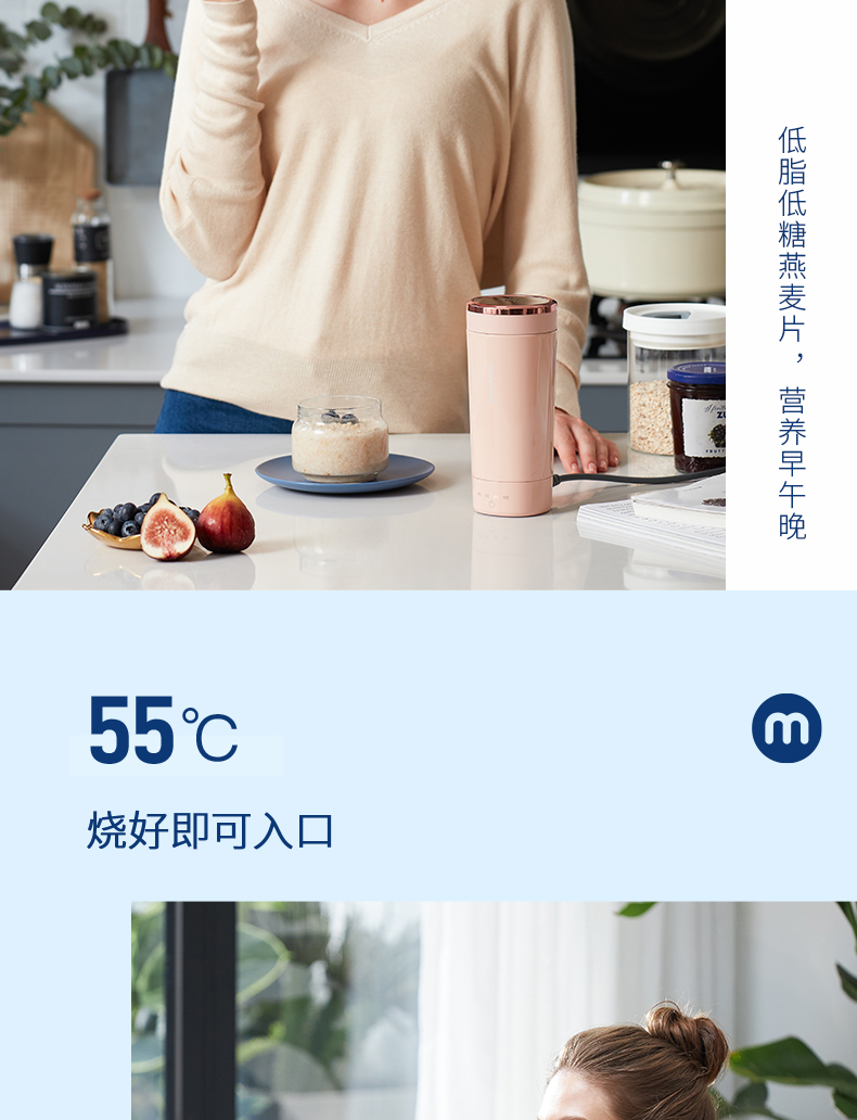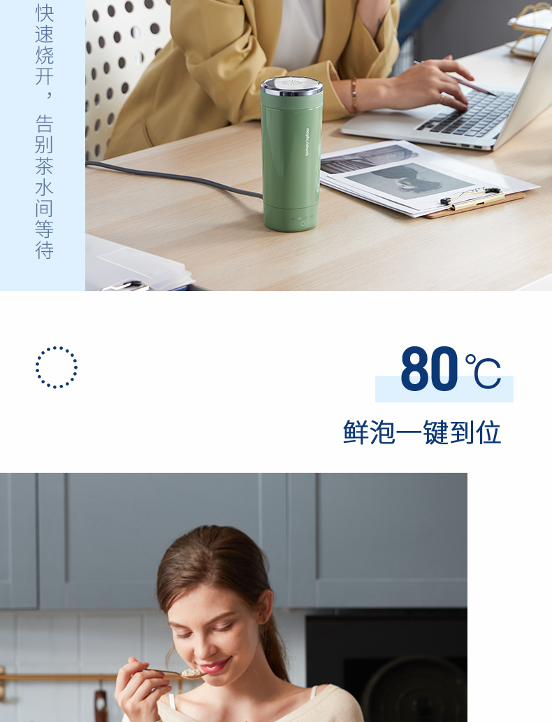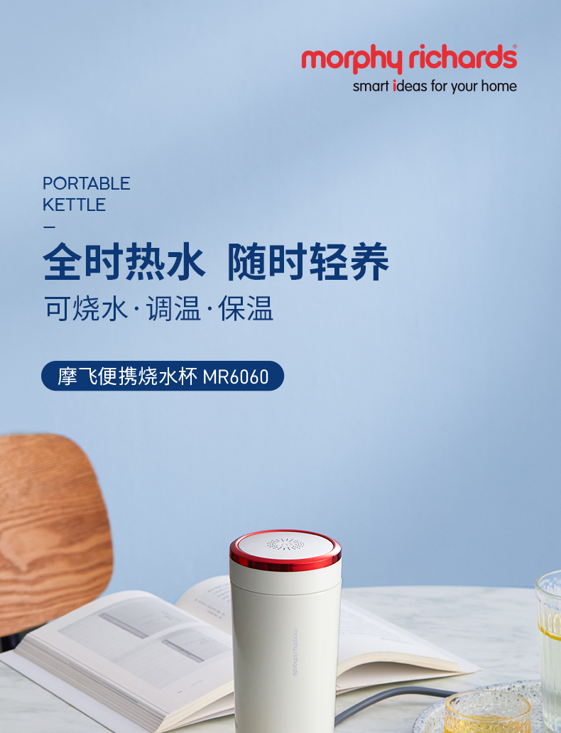 【摩飞可调温度的烧水杯】摩飞便携烧水杯MR6060 便携式烧水保温壶 免开盖烧水 真空保温6小时 全球通用电压多国适用