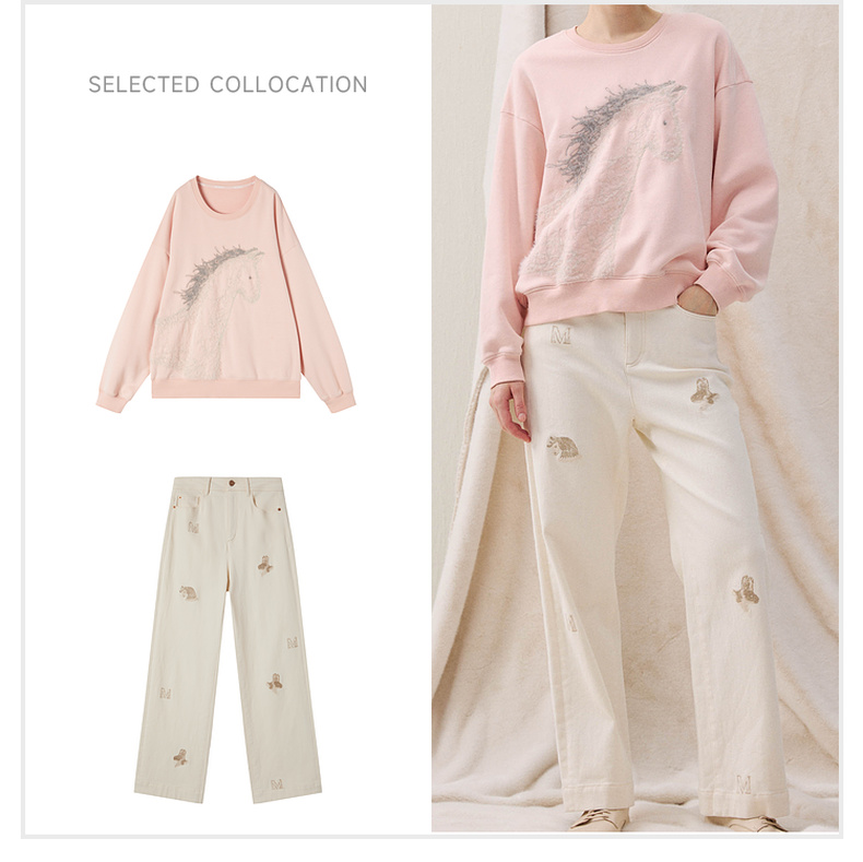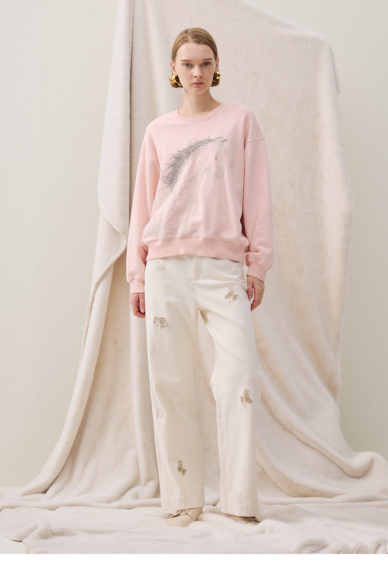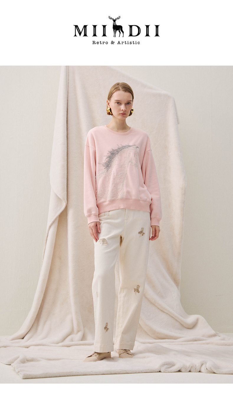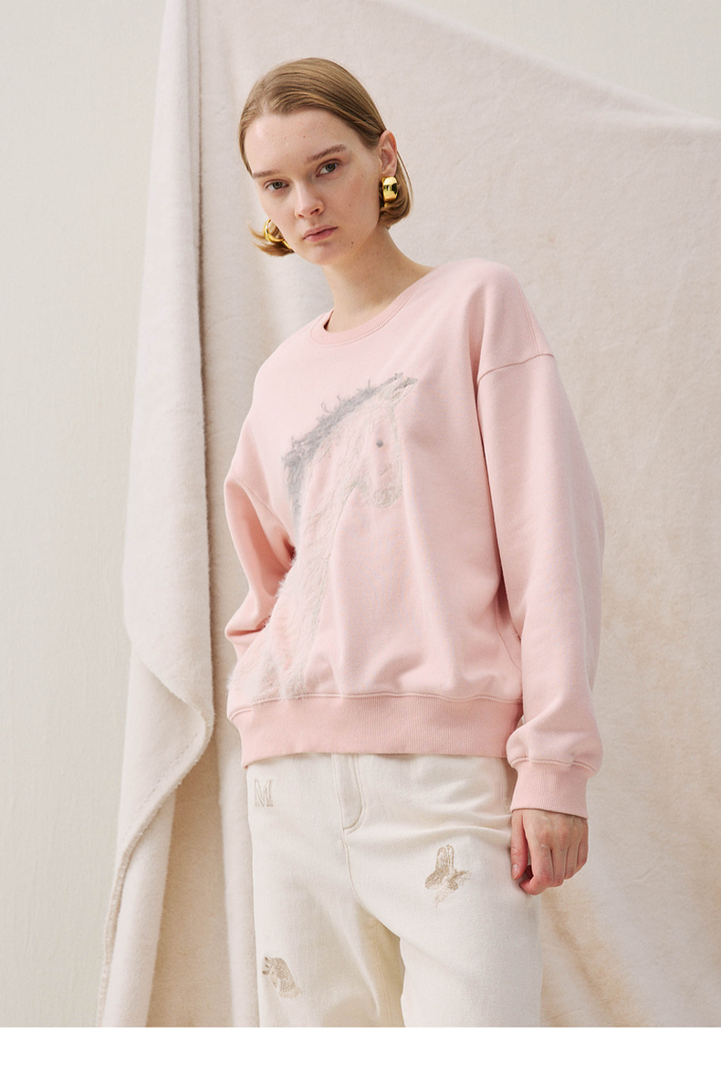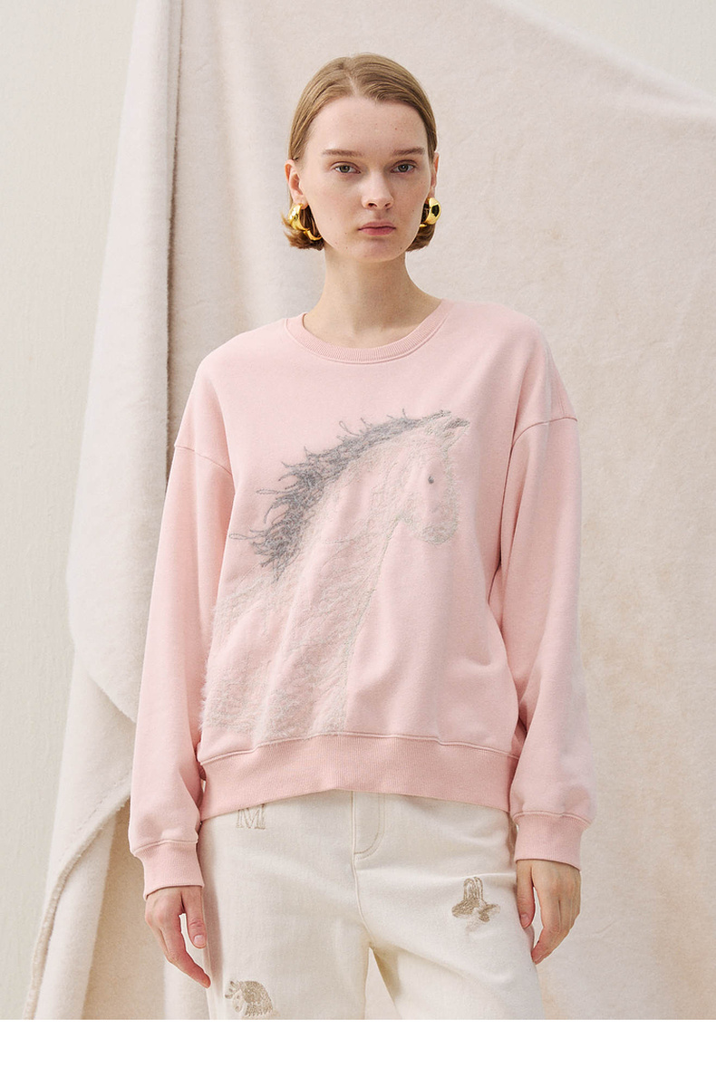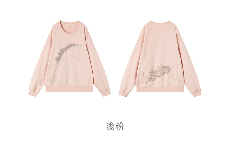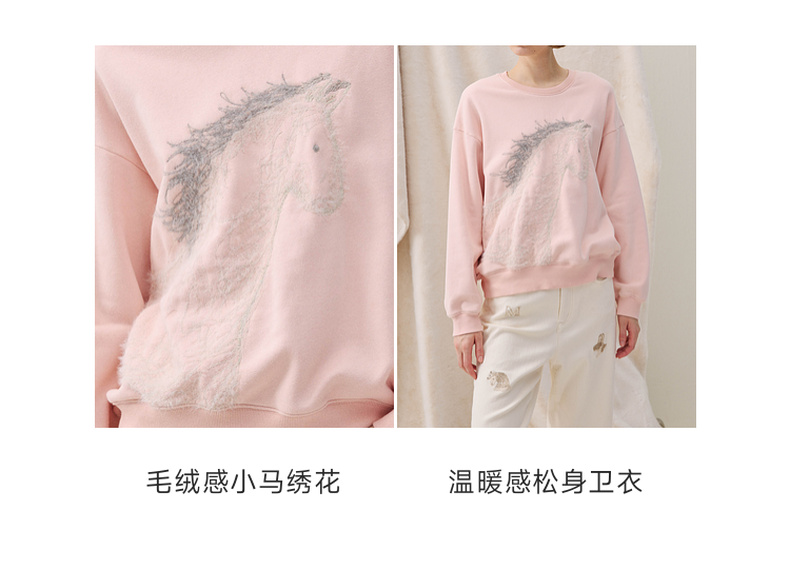 谜底卫衣长袖2025冬季新品抓毛卫衣小马绣花柔软亲肤女254MV1483