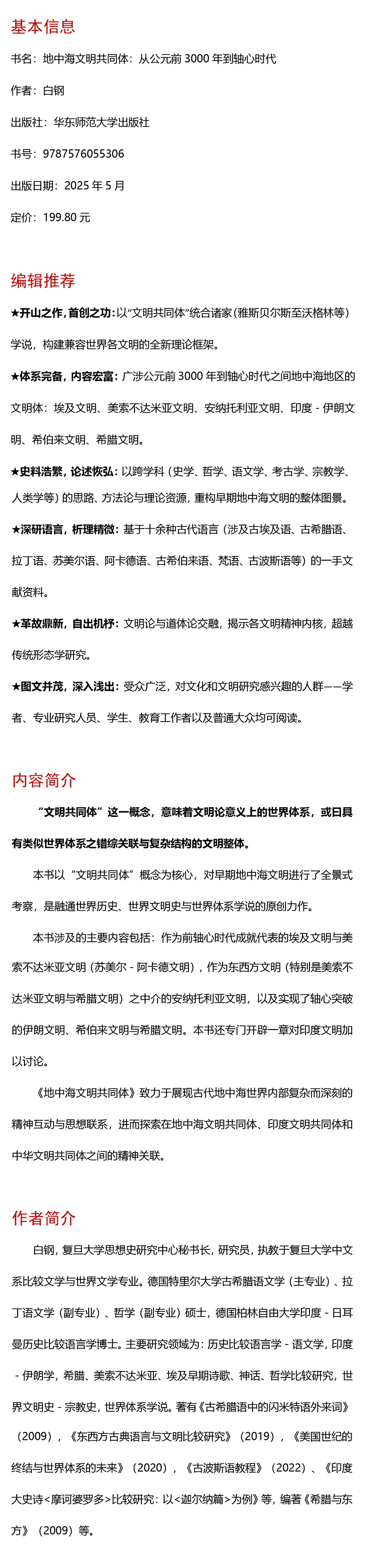 地中海文明共同体 从公元前3000年到轴心时代 白钢 六点图书