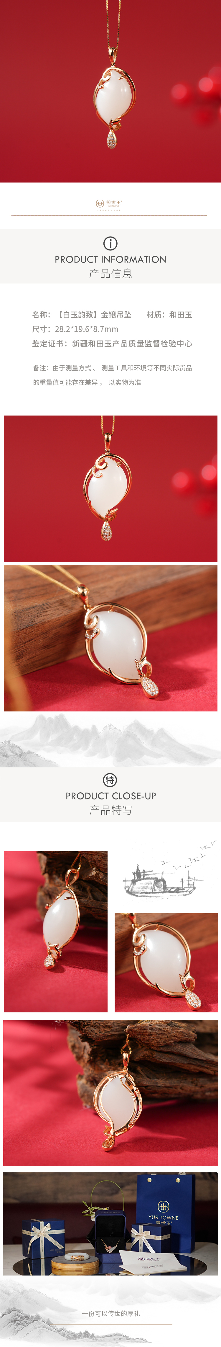 新疆国玉盟世玉【白玉韵致】金镶吊坠【顺丰物流】