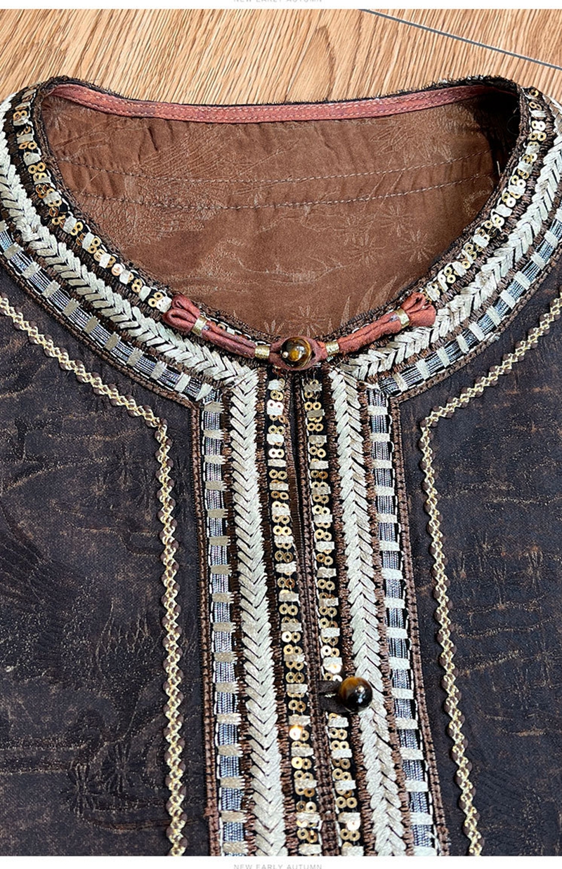 新中式人丝提花圆领长袖单排盘扣外套