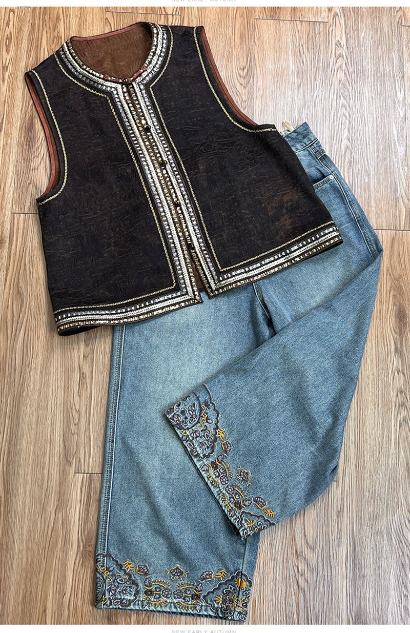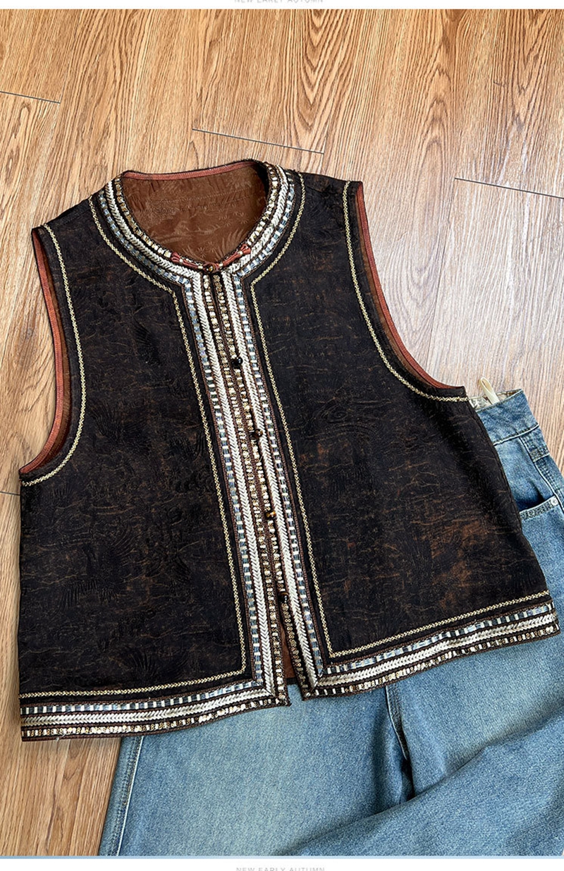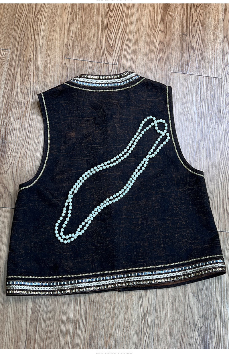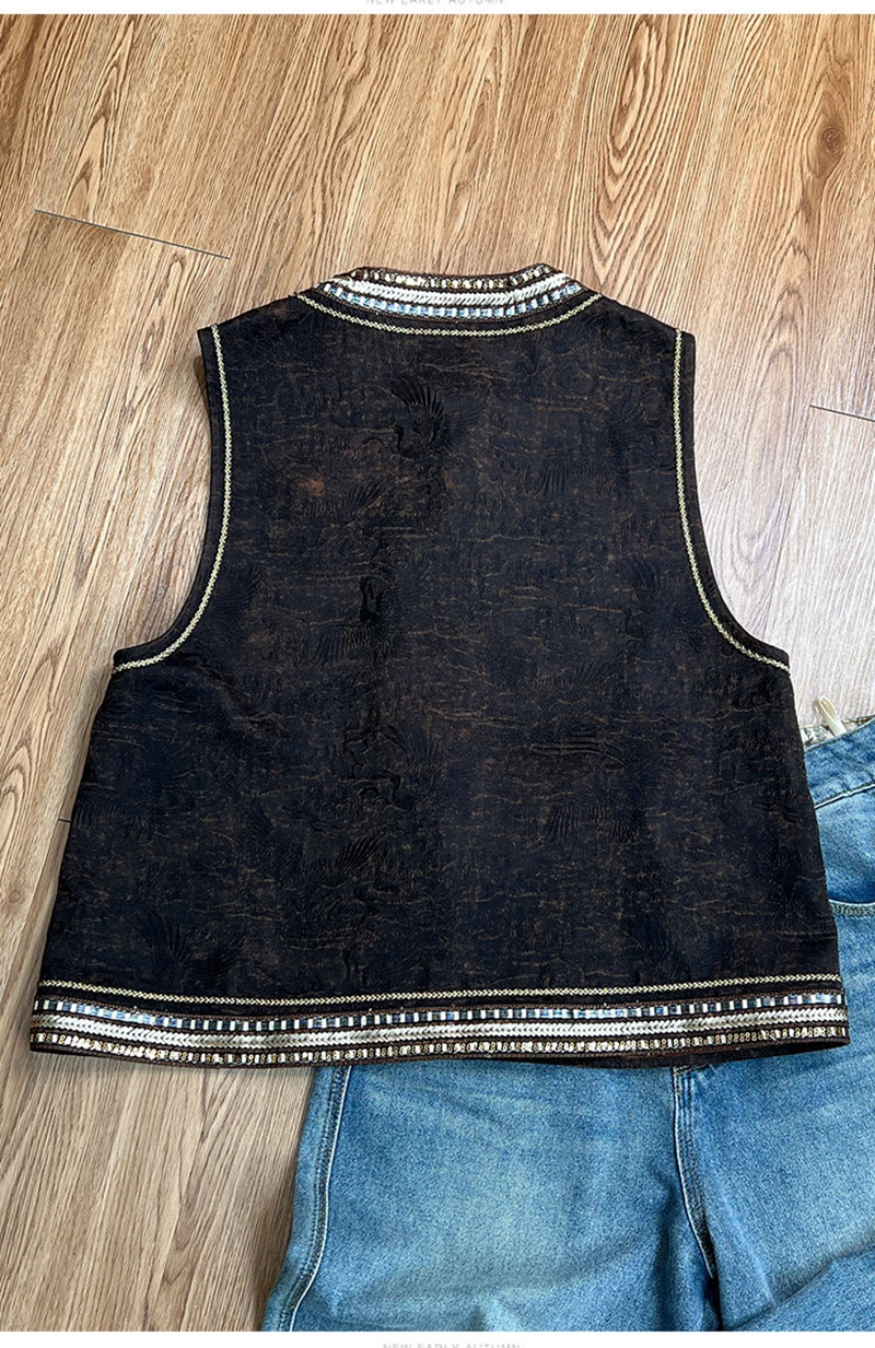 新中式双面穿波浪边提花圆领单排扣马甲