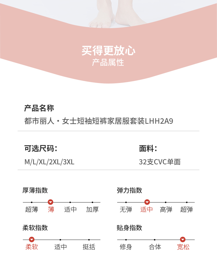 都市丽人女士特价棉质短袖套装薄32支CVC单面超值精选短袖类LHH2A9