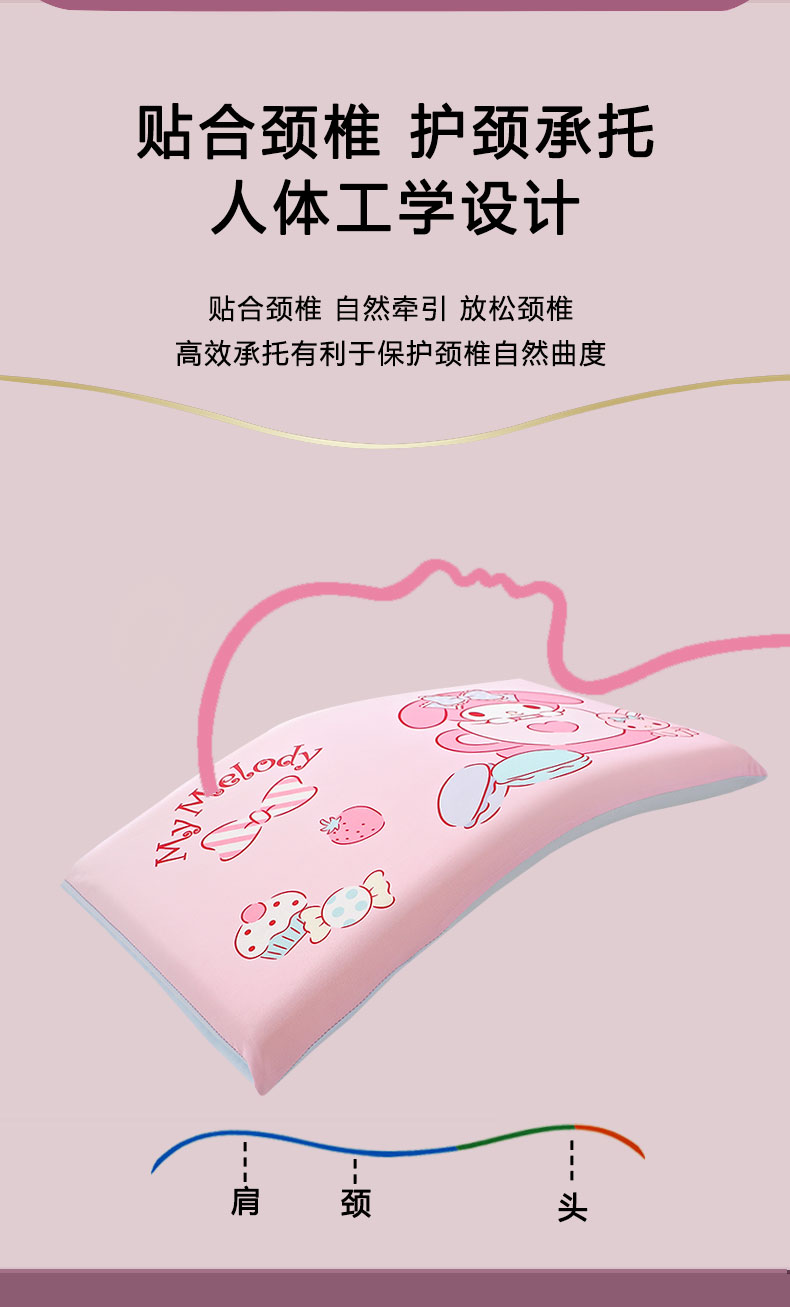 【品牌直发】 A类三丽鸥小凉皮儿童记忆枕 慢回弹记忆枕学生午睡枕