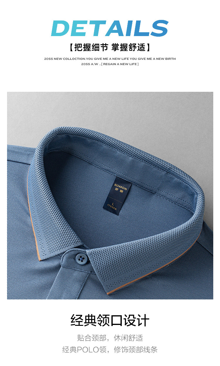 【含桑蚕丝&亚麻】罗蒙夏季男士t恤短袖polo衫商务polo衫男短袖