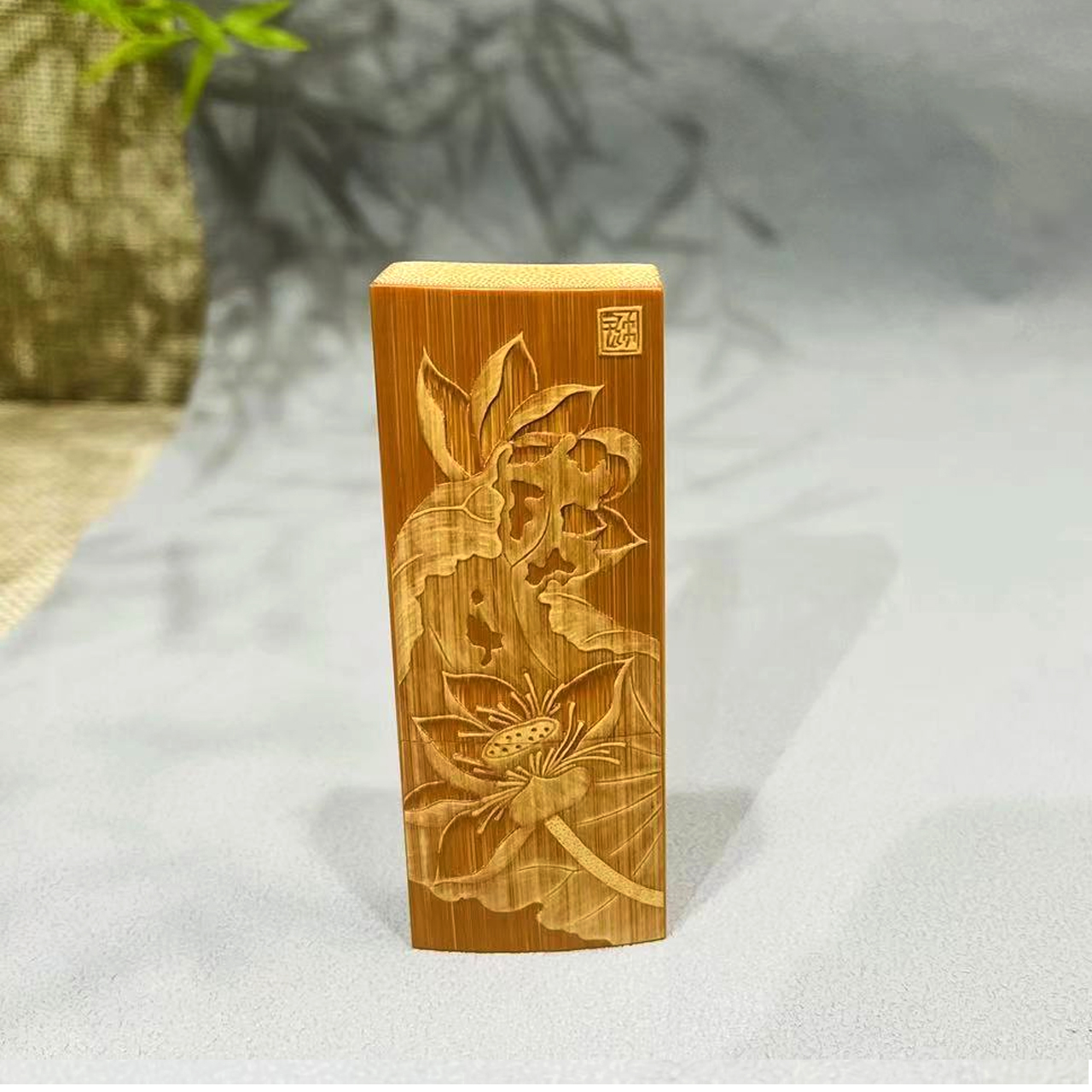 荷趣°精雕竹留青牙签盒