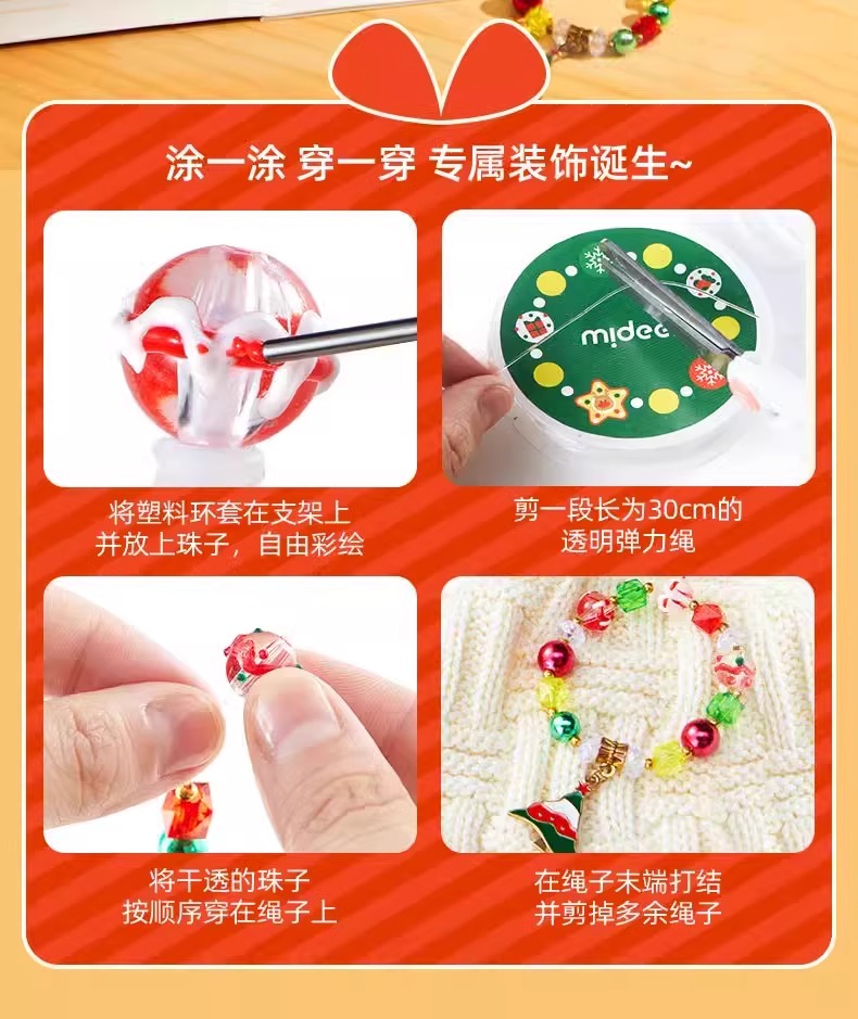 mideer弥鹿儿童手链串珠diy宝石礼盒女孩饰品玩具装饰圣诞礼物