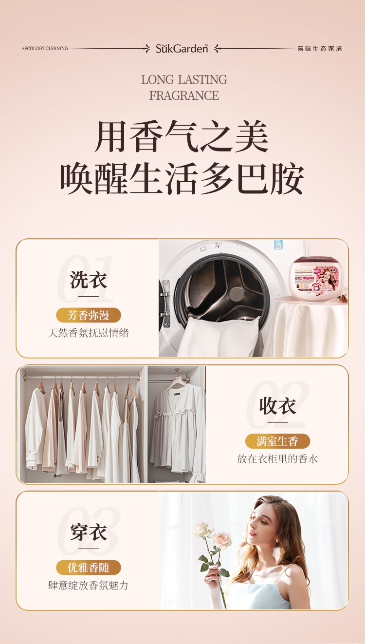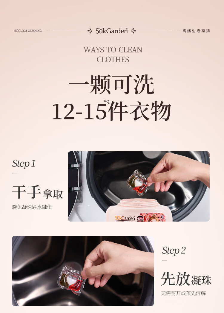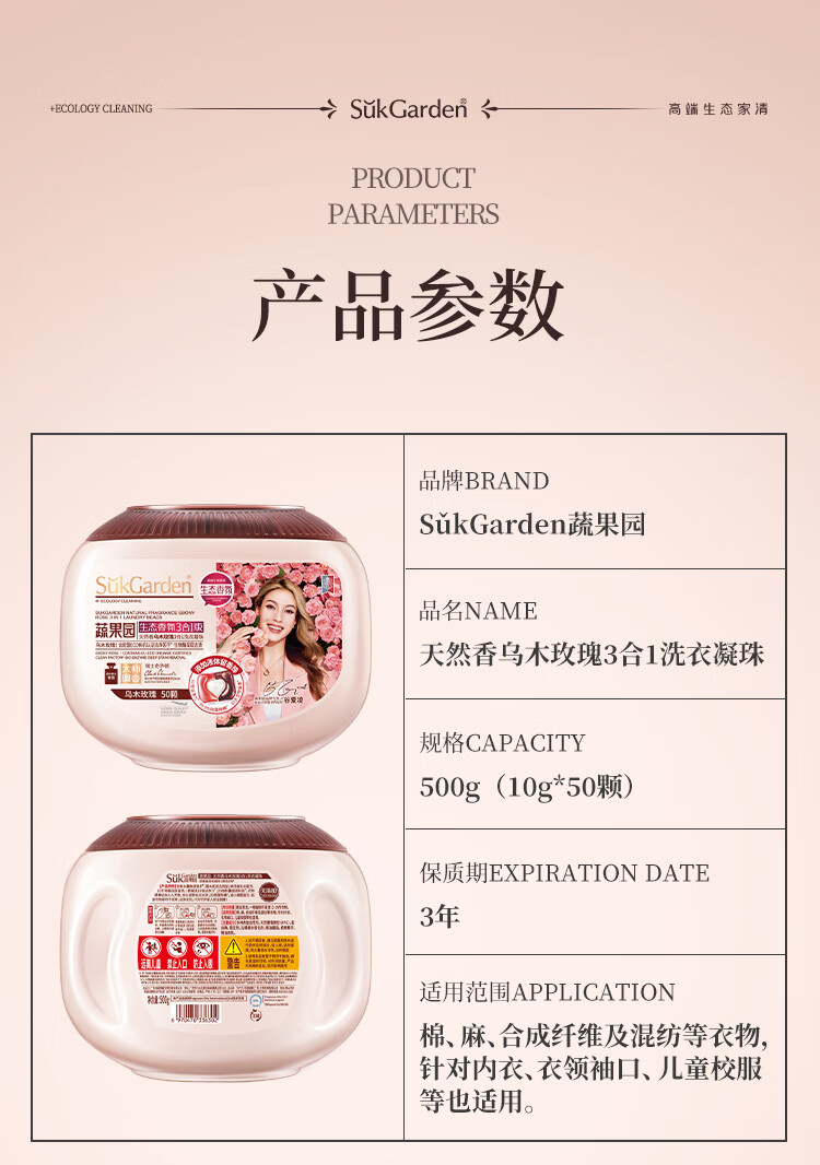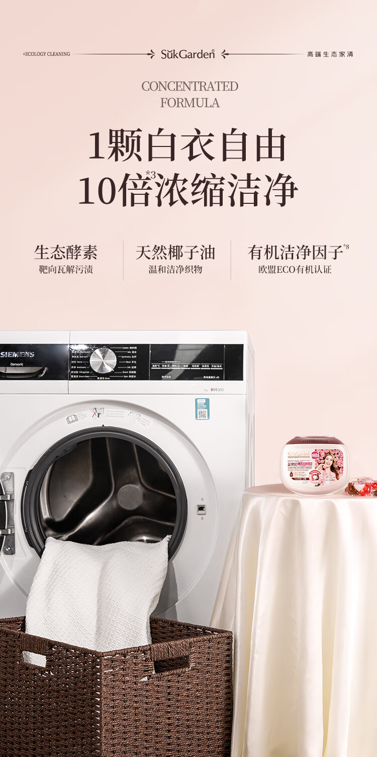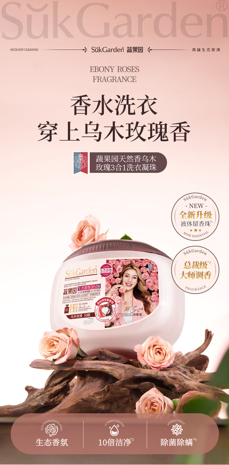 SukGarden蔬果园天然香乌木玫瑰3合1洗衣凝珠10g*50颗