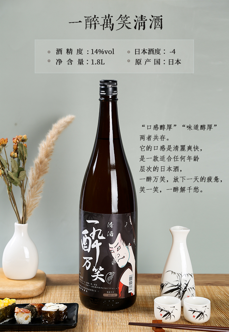 【日本原瓶进口】 一醉万笑清酒1.8L