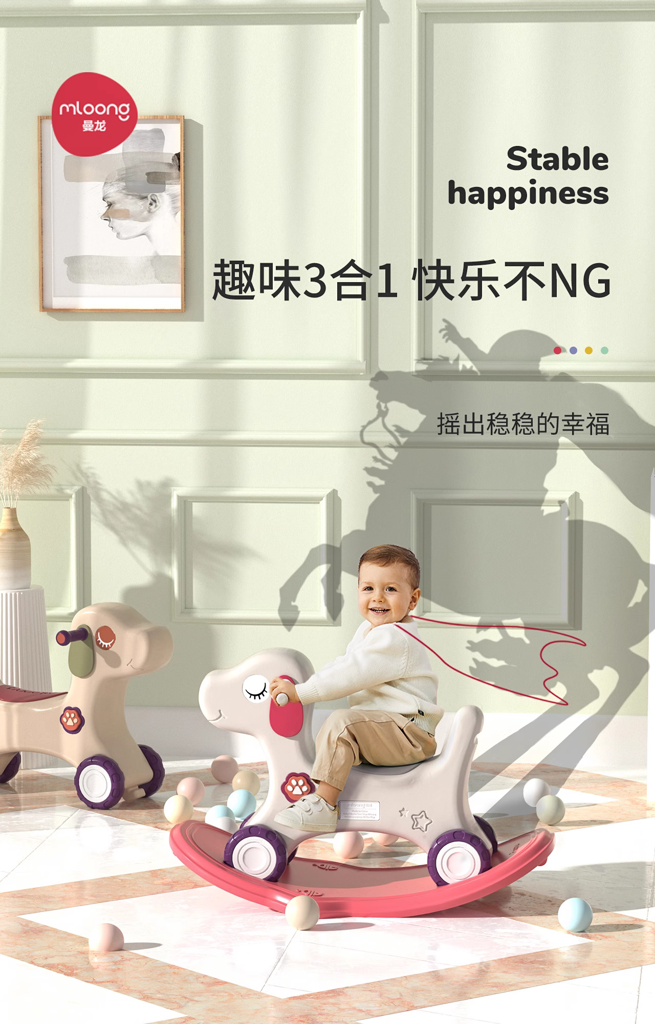 曼龙儿童摇马摇摇马二合一小木马婴儿周岁礼物摇摇车玩具