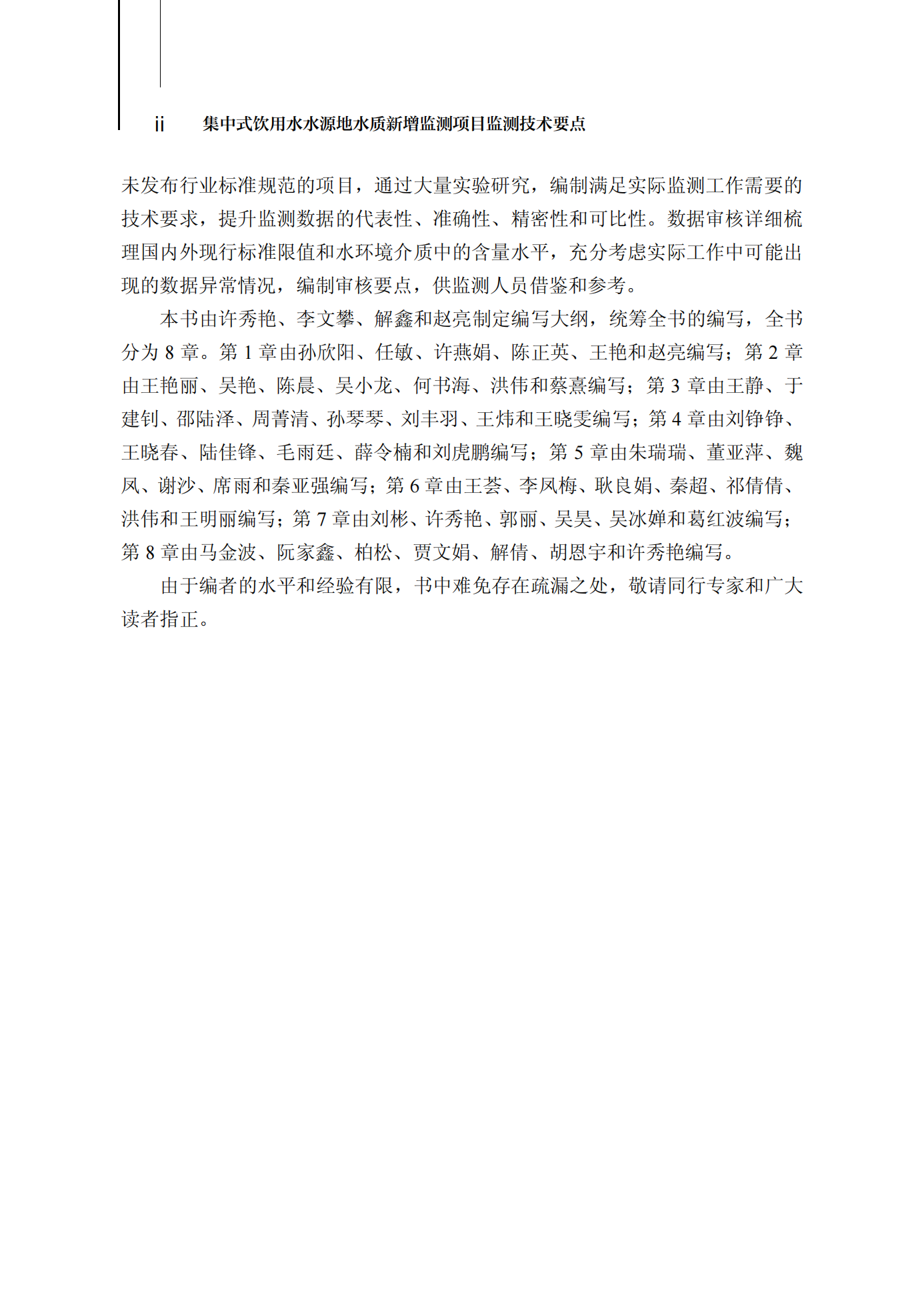 集中式饮用水水源地水质新增监测项目监测技术要点