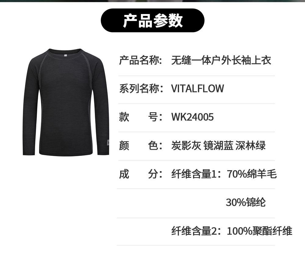 woolikin·VitalFlow 男士美利奴羊毛无缝-体户外长袖VICUNA® WK24005