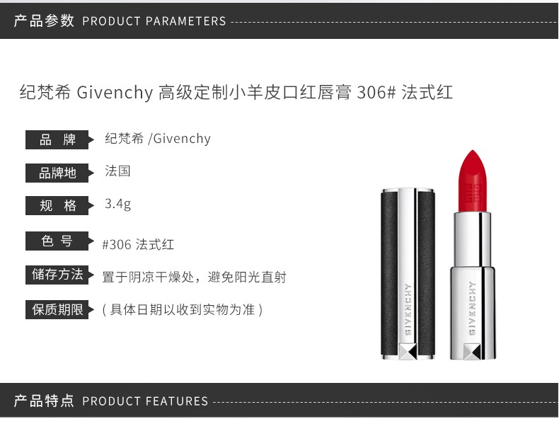 GIVENCHY纪梵希 高级定制小羊皮唇膏 小羊皮 #306 3.4g 法国