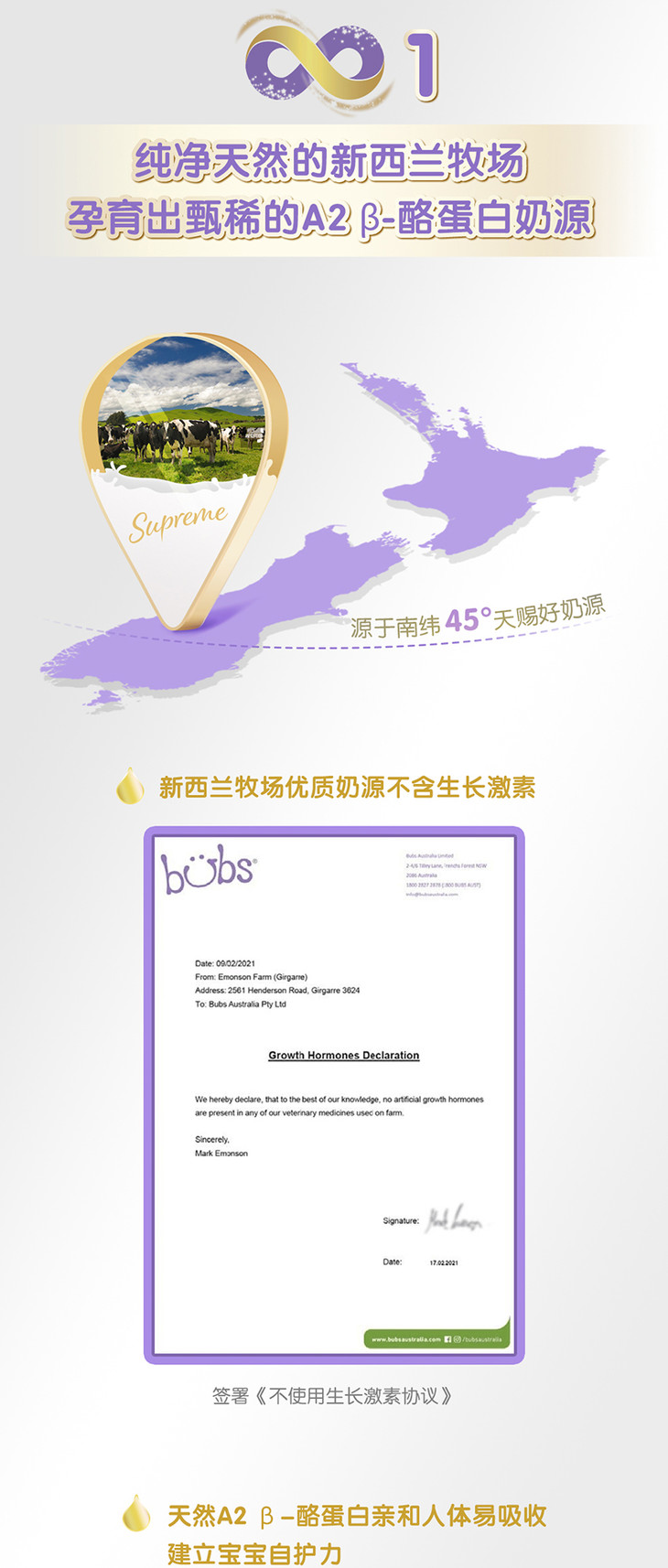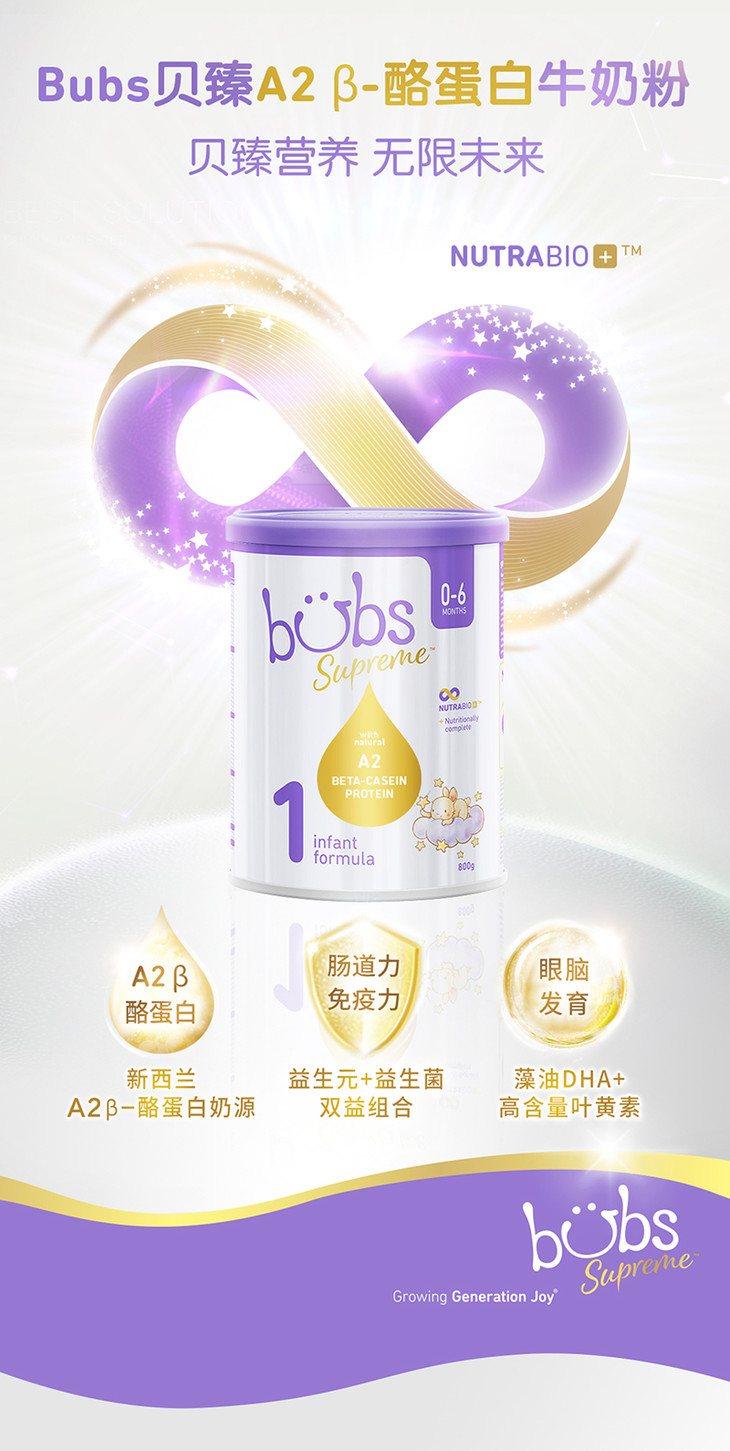 (保税区)Bubs贝臻A2牛奶粉1段800g