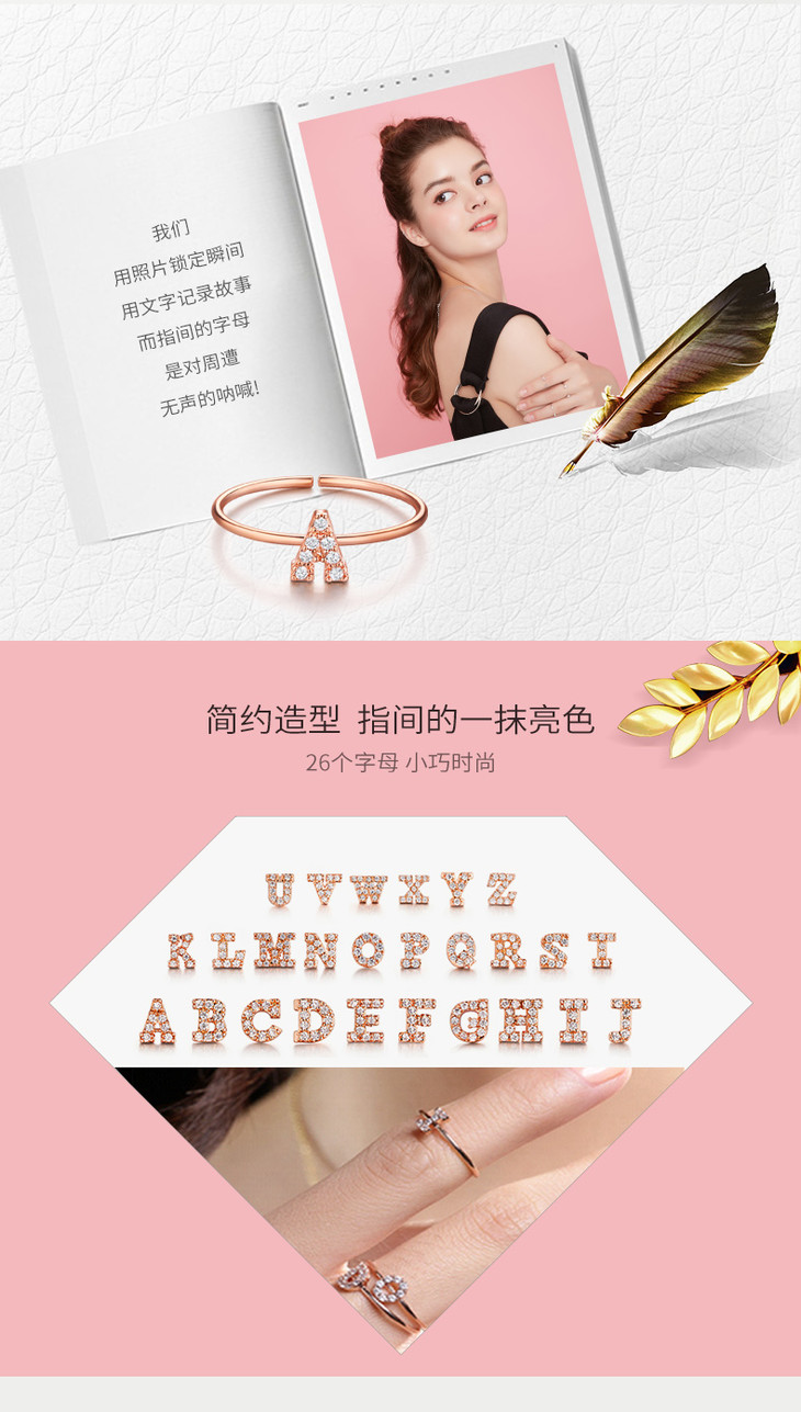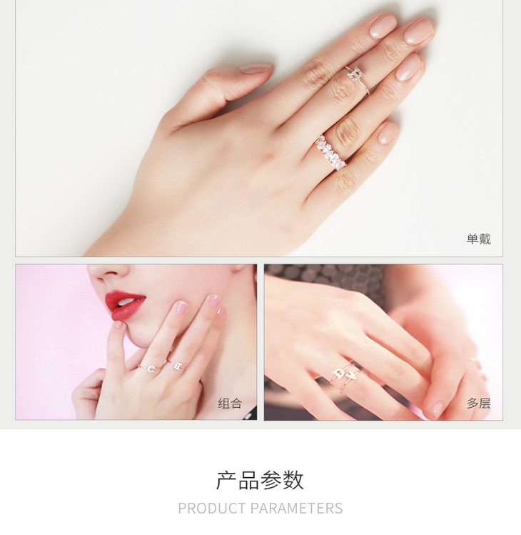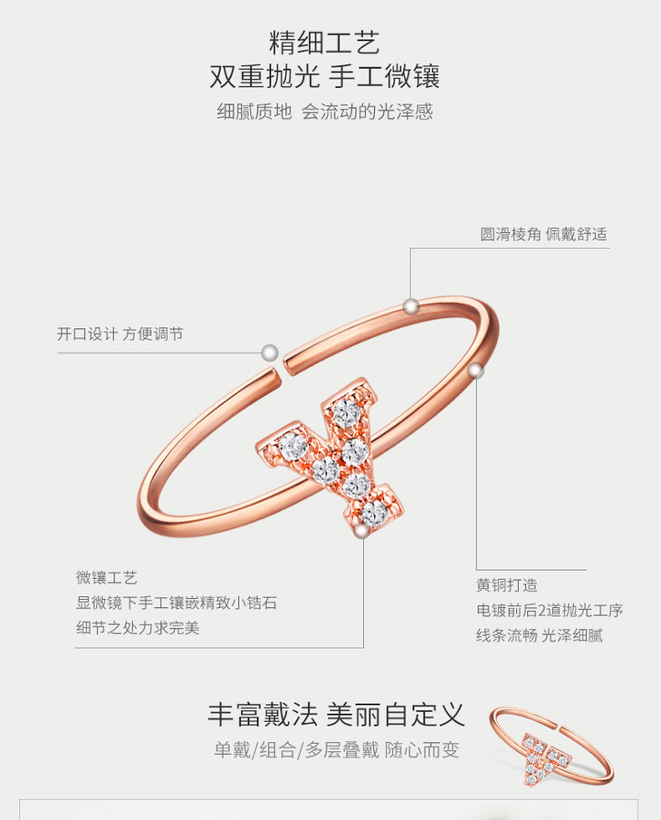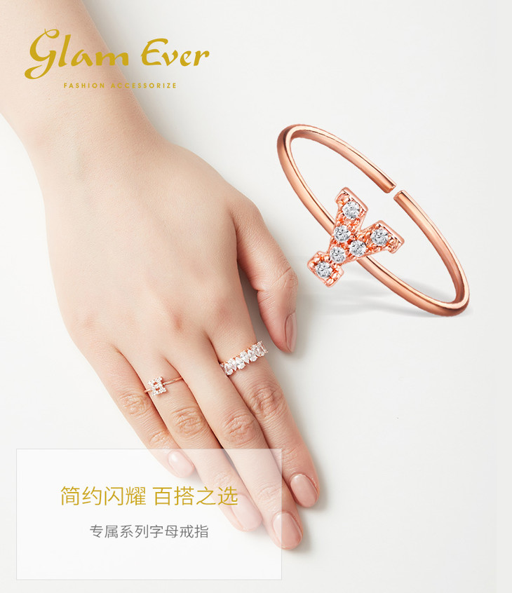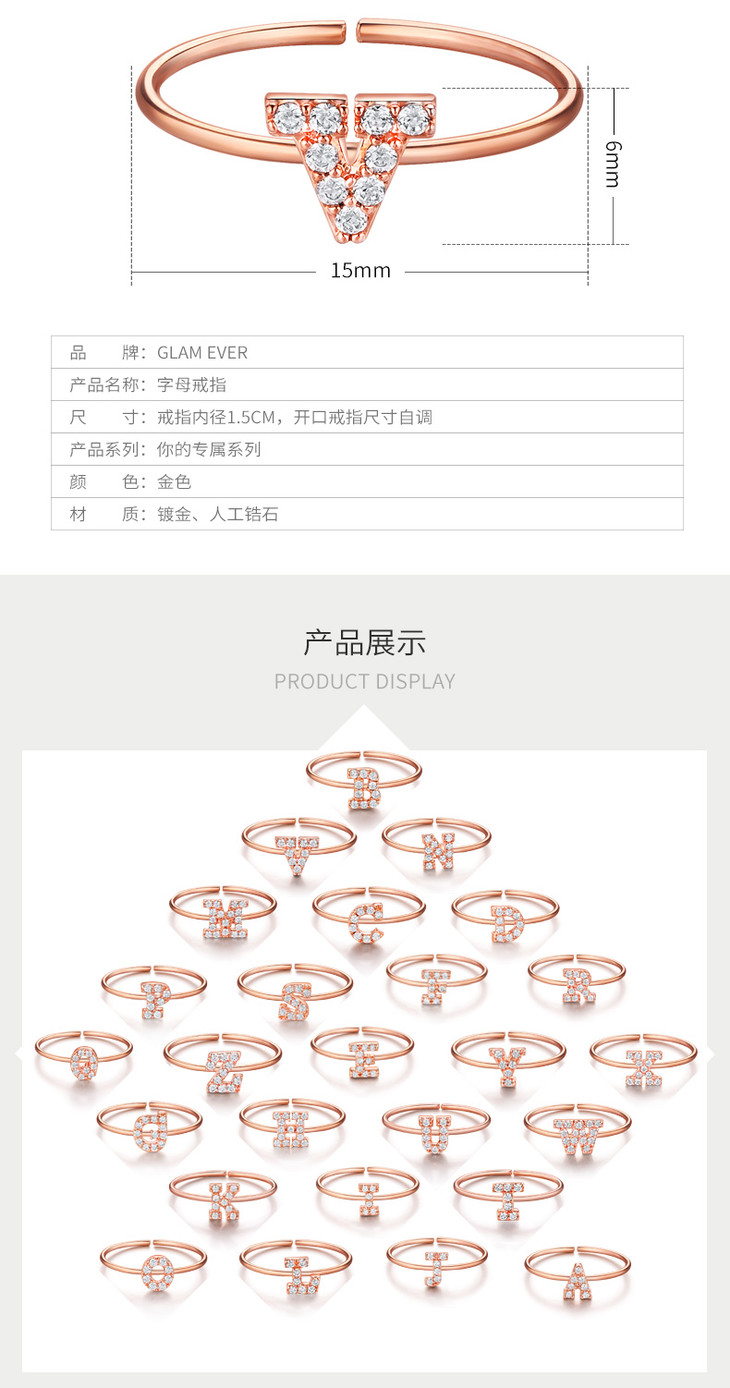【已下架】积分换购 | GlamEver 玫瑰金开口镀金人工锆石指环简约全钻字母戒指.潮快闪[福利品]
