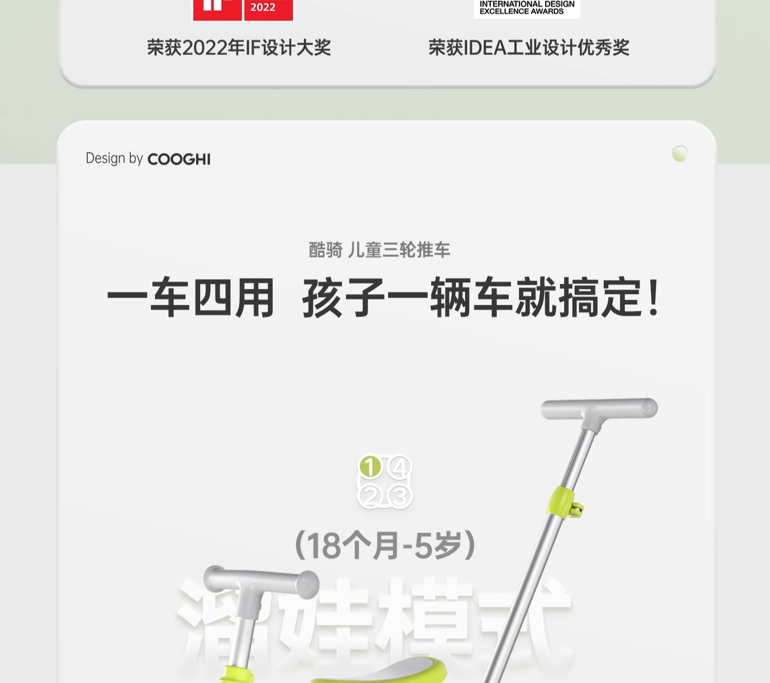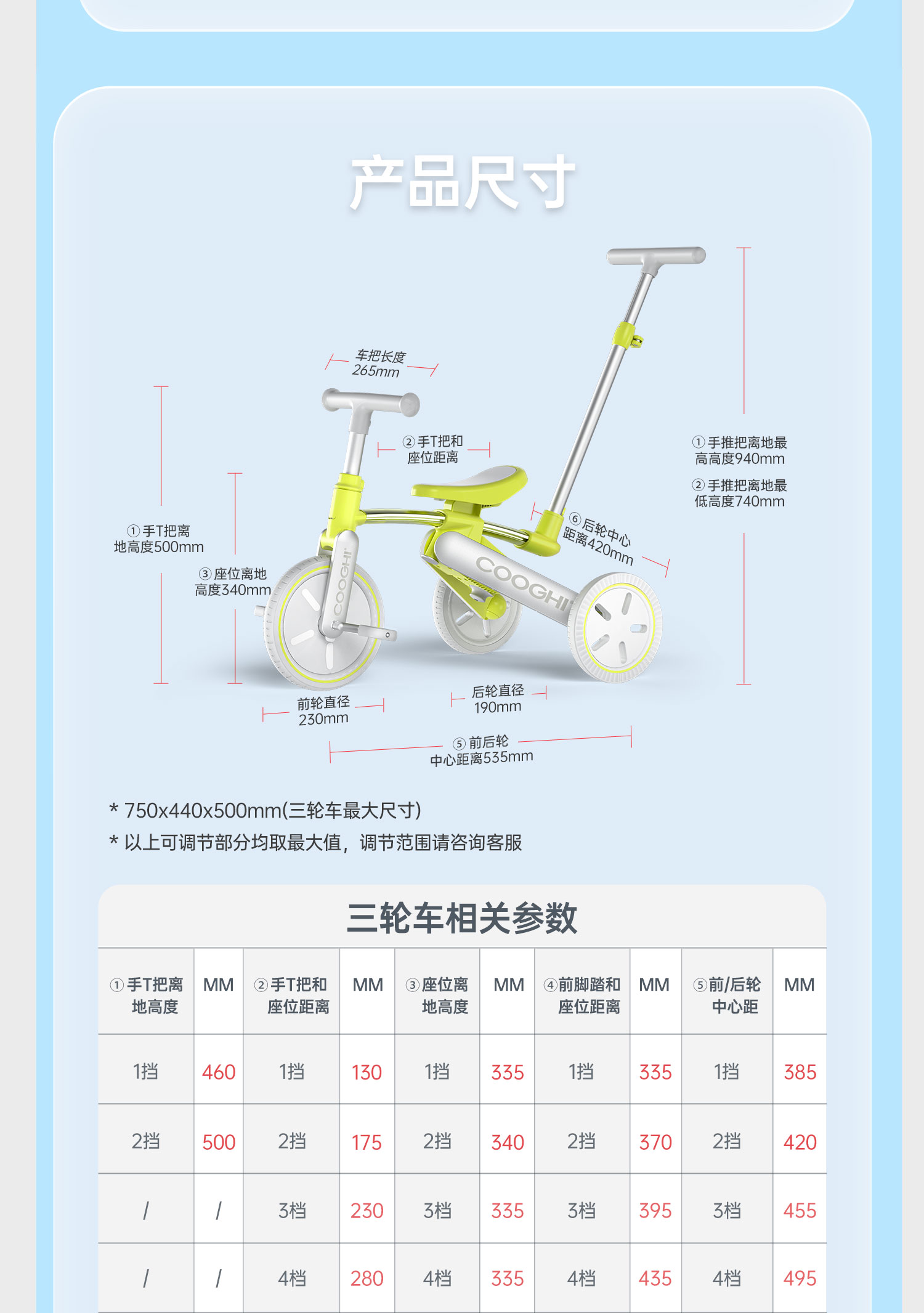 【COOGHI/酷骑】K3儿童三轮车脚踏车 1-5岁