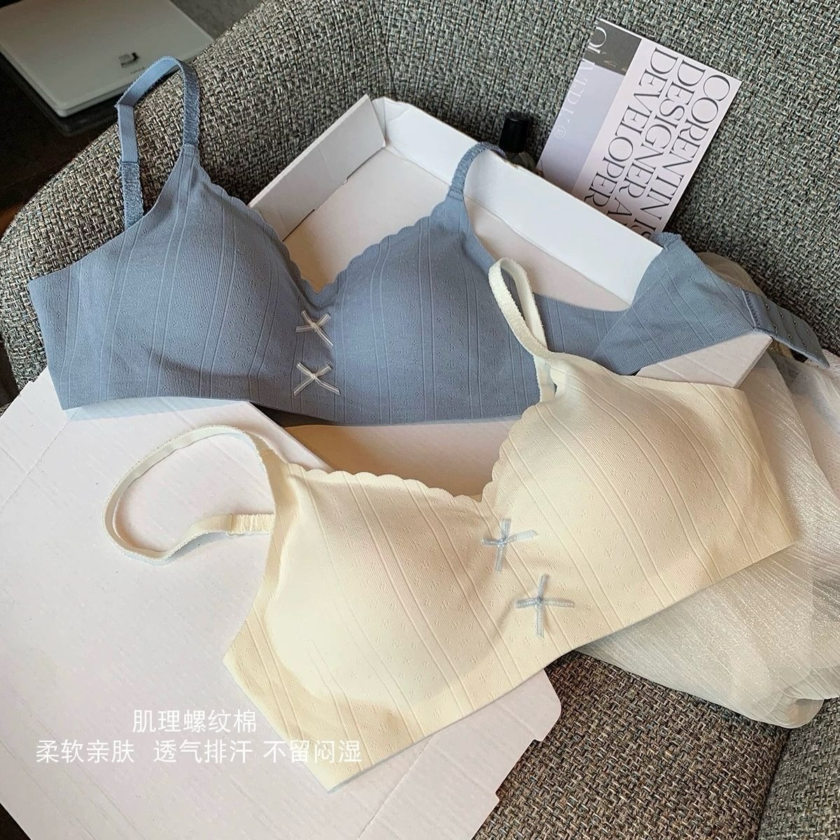 蝴蝶结无痕裸感内衣女小胸聚拢舒适无钢圈收副乳防下垂少女文胸罩
