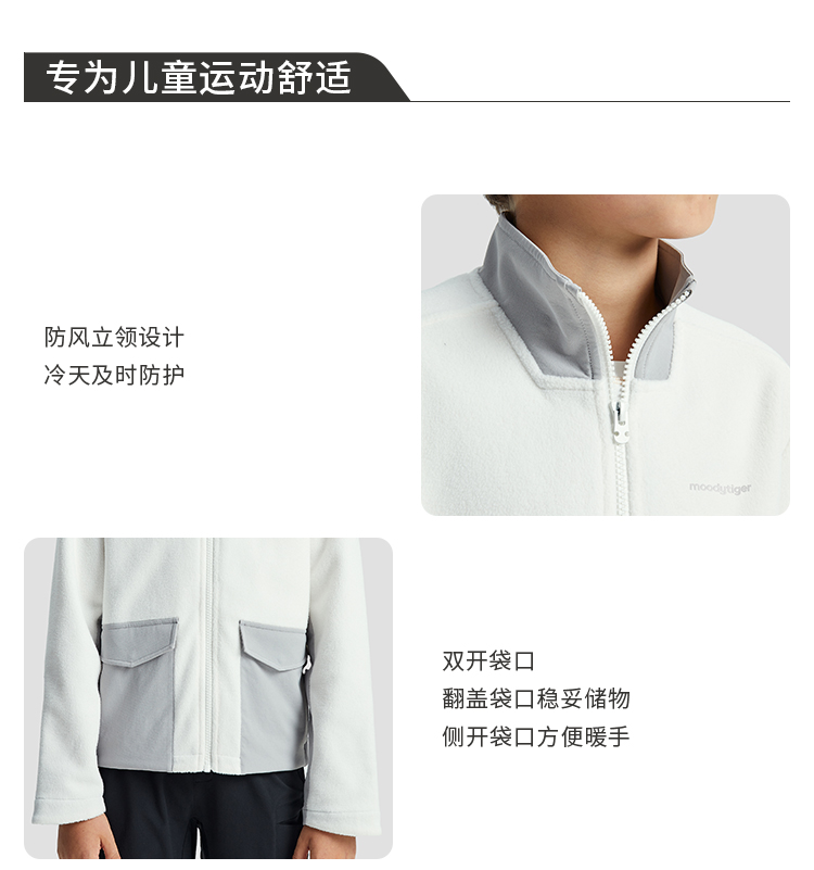 【福利】moodytiger儿童外套男童保暖耐磨摇粒绒休闲运动外衣 M33110403