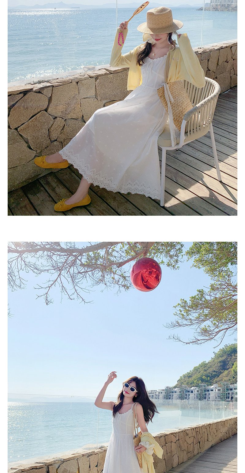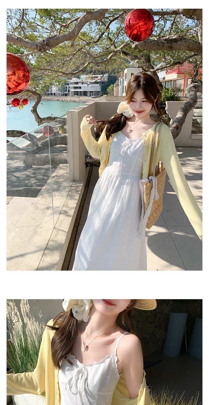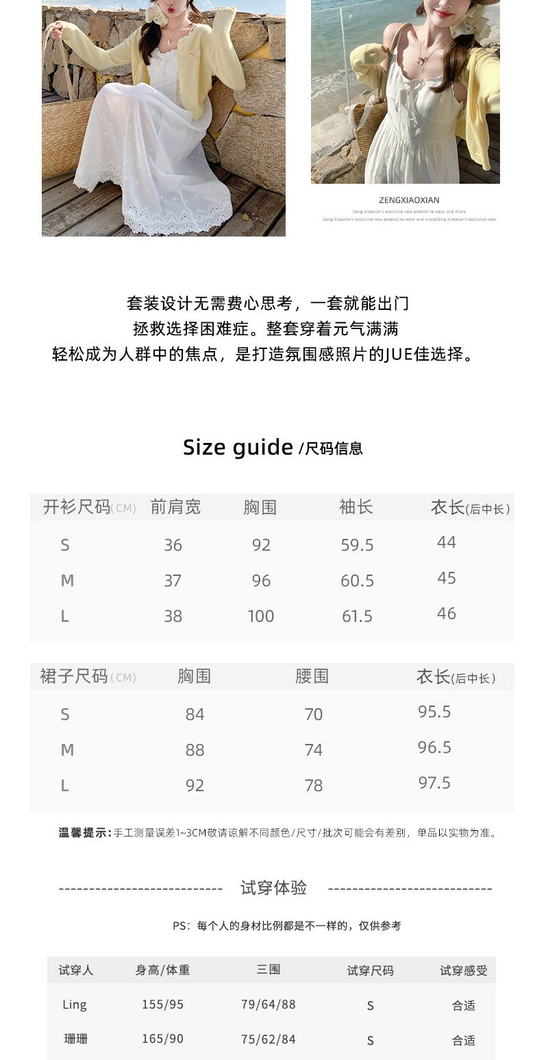 <曾小咸推荐>白色吊带裙子黄色开衫套装