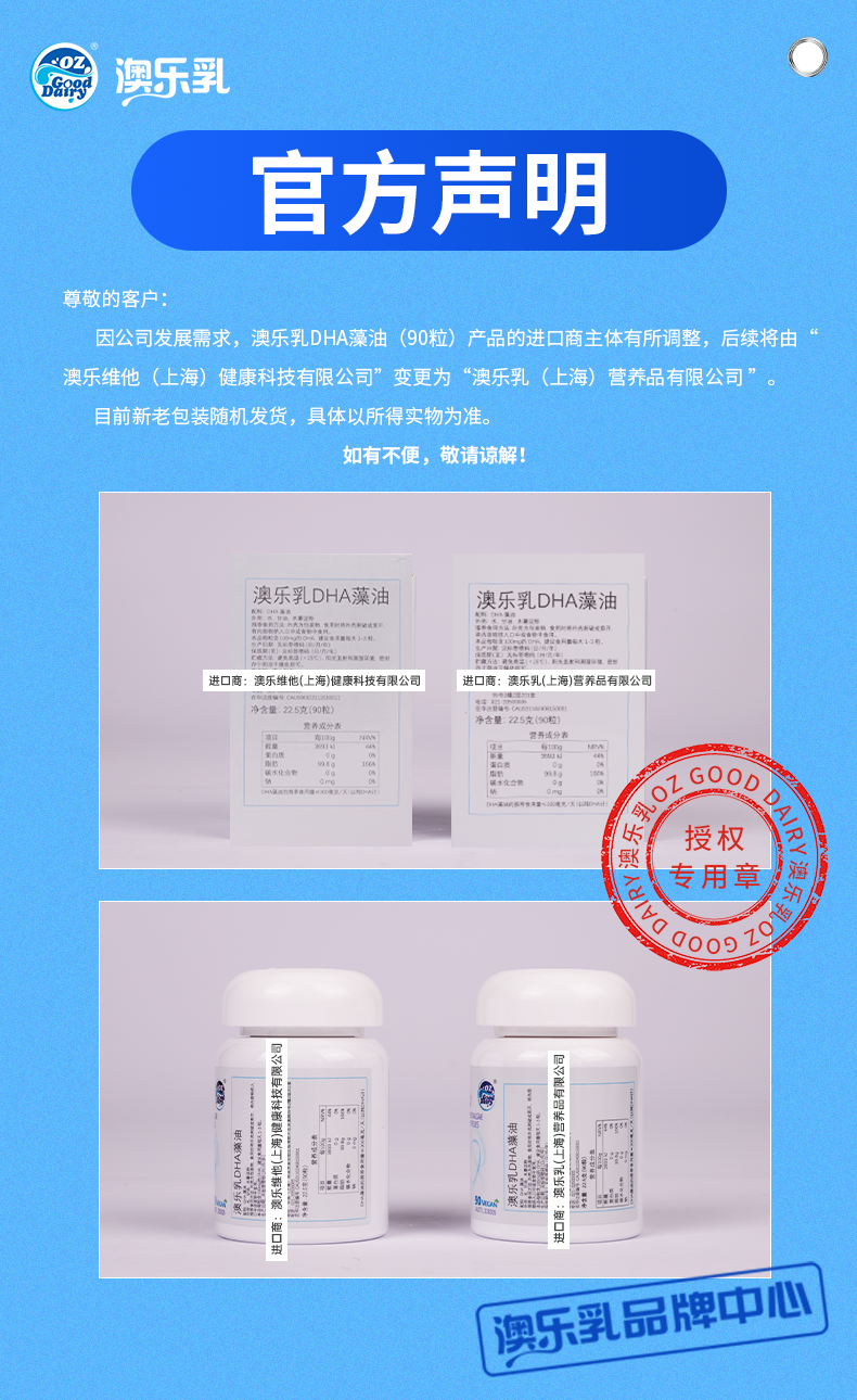 【专属】【焕新升级】澳乐乳儿童 DHA 藻油胶囊 90粒/瓶