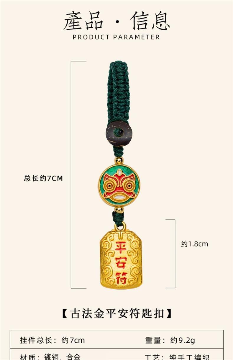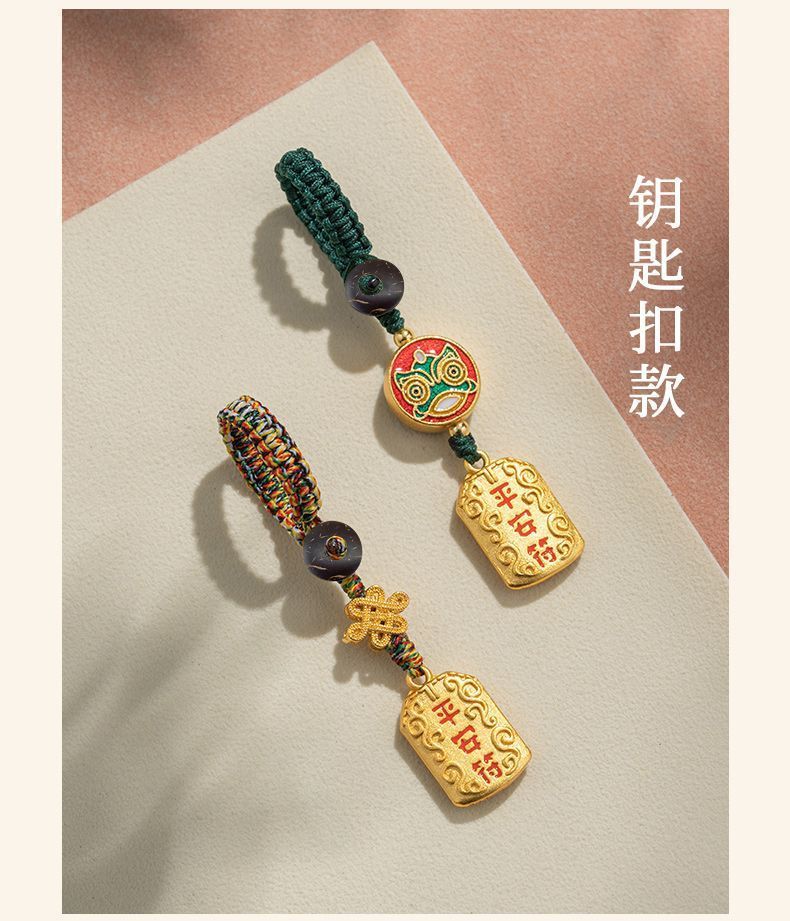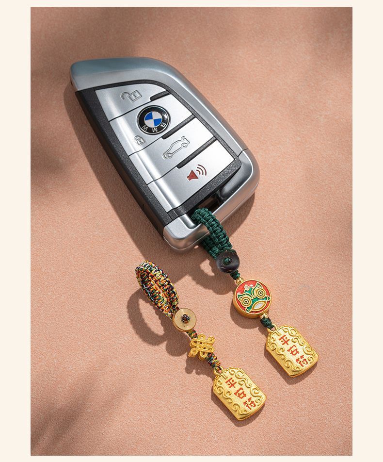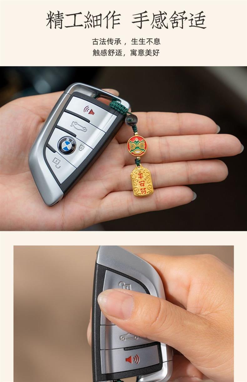 「9.9元包邮!买2送1」黄铜平安符汽车钥匙扣挂绳挂件男款挂饰链好运小钥匙链女时尚饰品