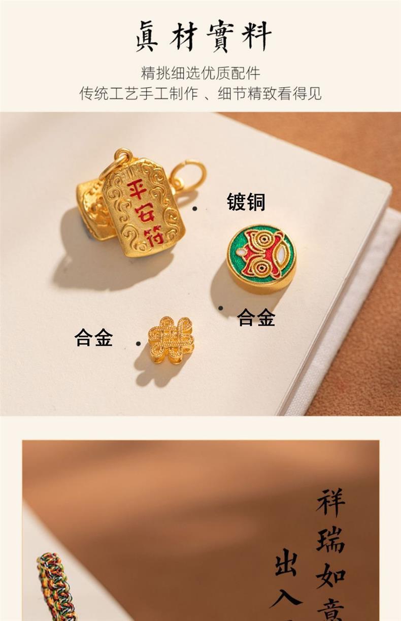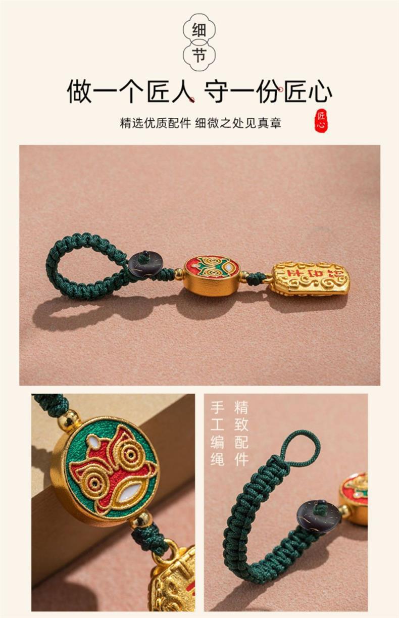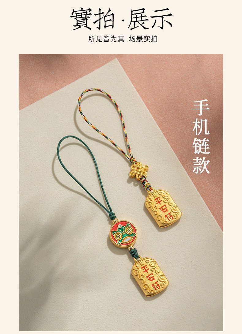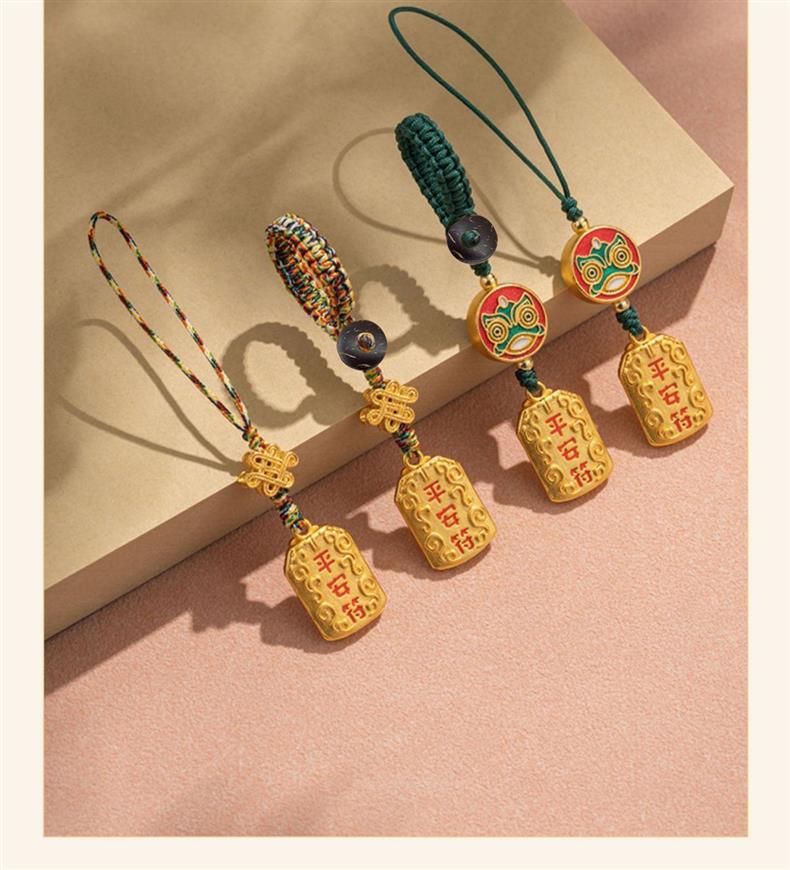 「9.9元包邮!买2送1」黄铜平安符汽车钥匙扣挂绳挂件男款挂饰链好运小钥匙链女时尚饰品