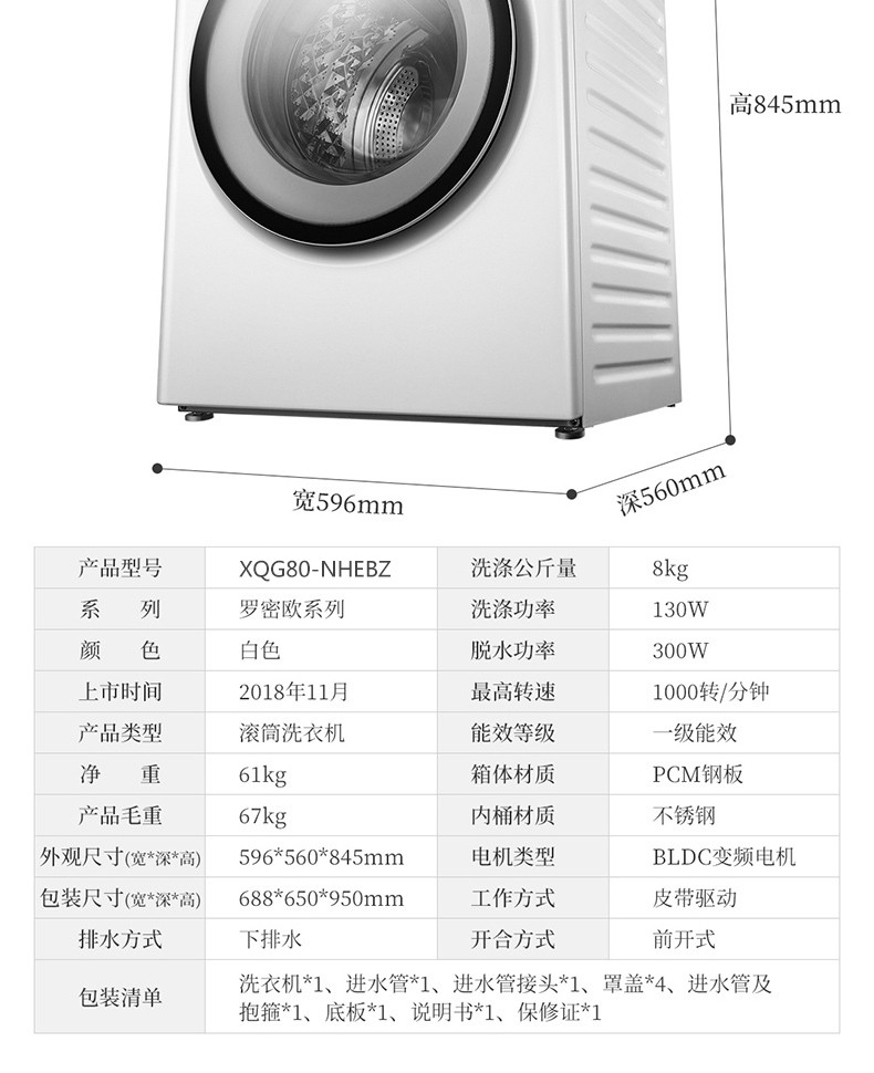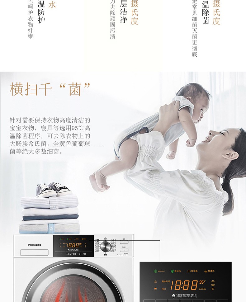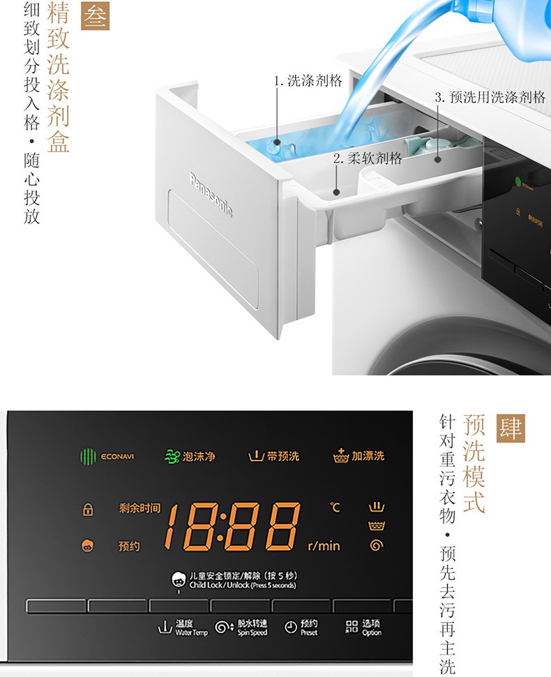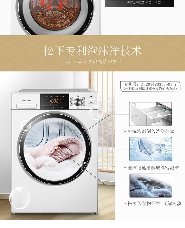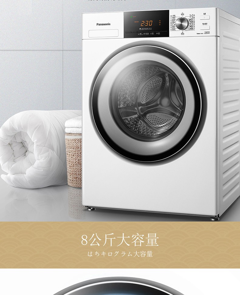 【盛元新生活】松下(Panasonic)8公斤大容量全自动家用滚筒变频品牌洗衣机正品羽绒服洗