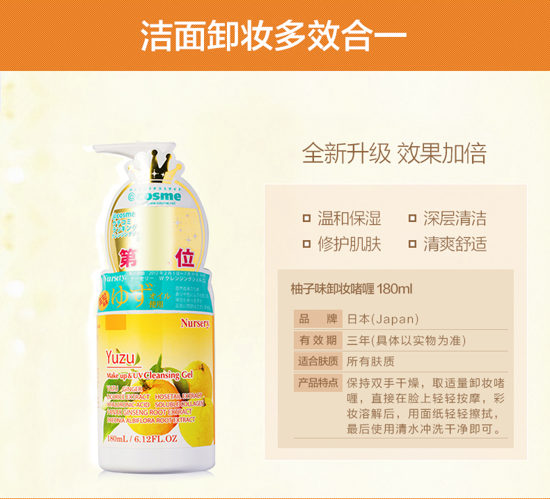 【新品】保税商品 柚子卸妆啫喱180ml【非现货 约1-2周到货】