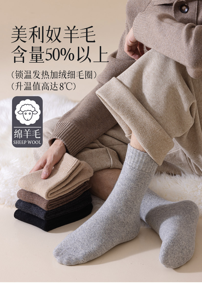 自发热美利奴羊毛袜,羊毛含量50%以上、快速升温8度,男女款【G】
