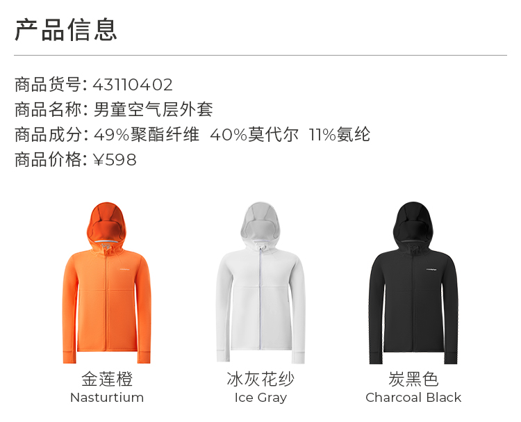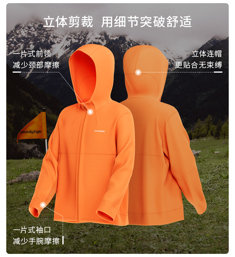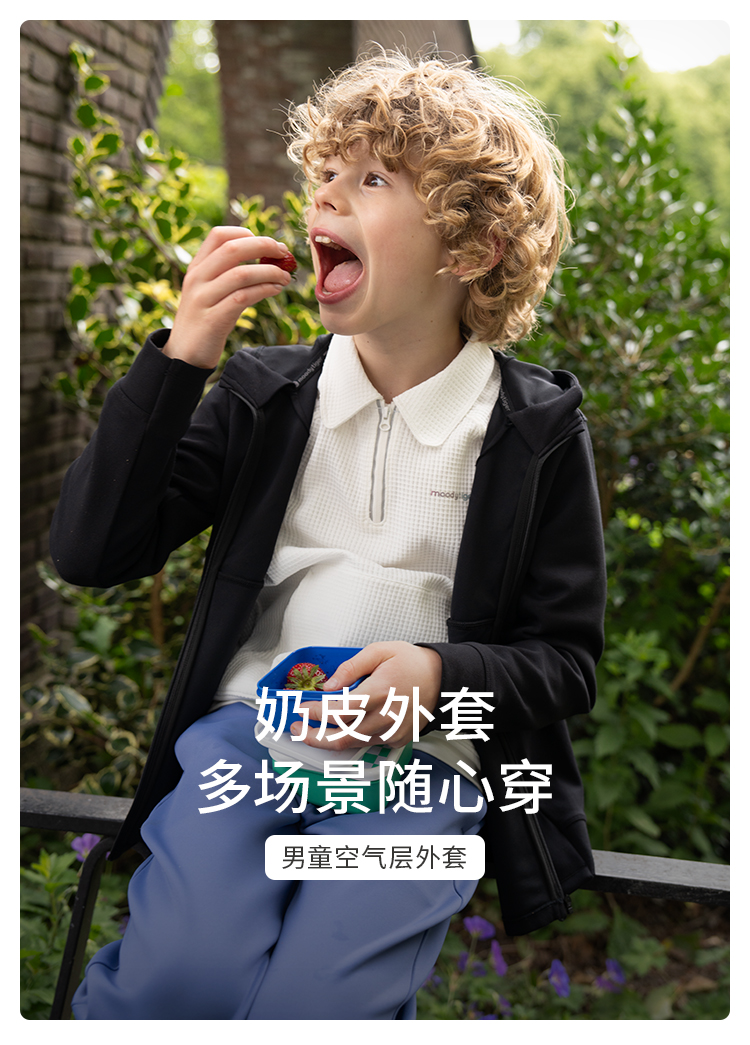 【24年秋新】moodytiger24秋新男童连帽外套百搭透气排汗户外运动衣43110402