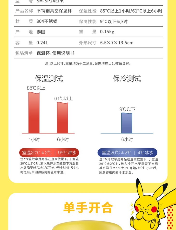 象印保温杯女304不锈钢真空保温保冷进口杯弹盖小清新可爱水杯子儿童保温杯SP24EPK宝可梦 EP胖丁