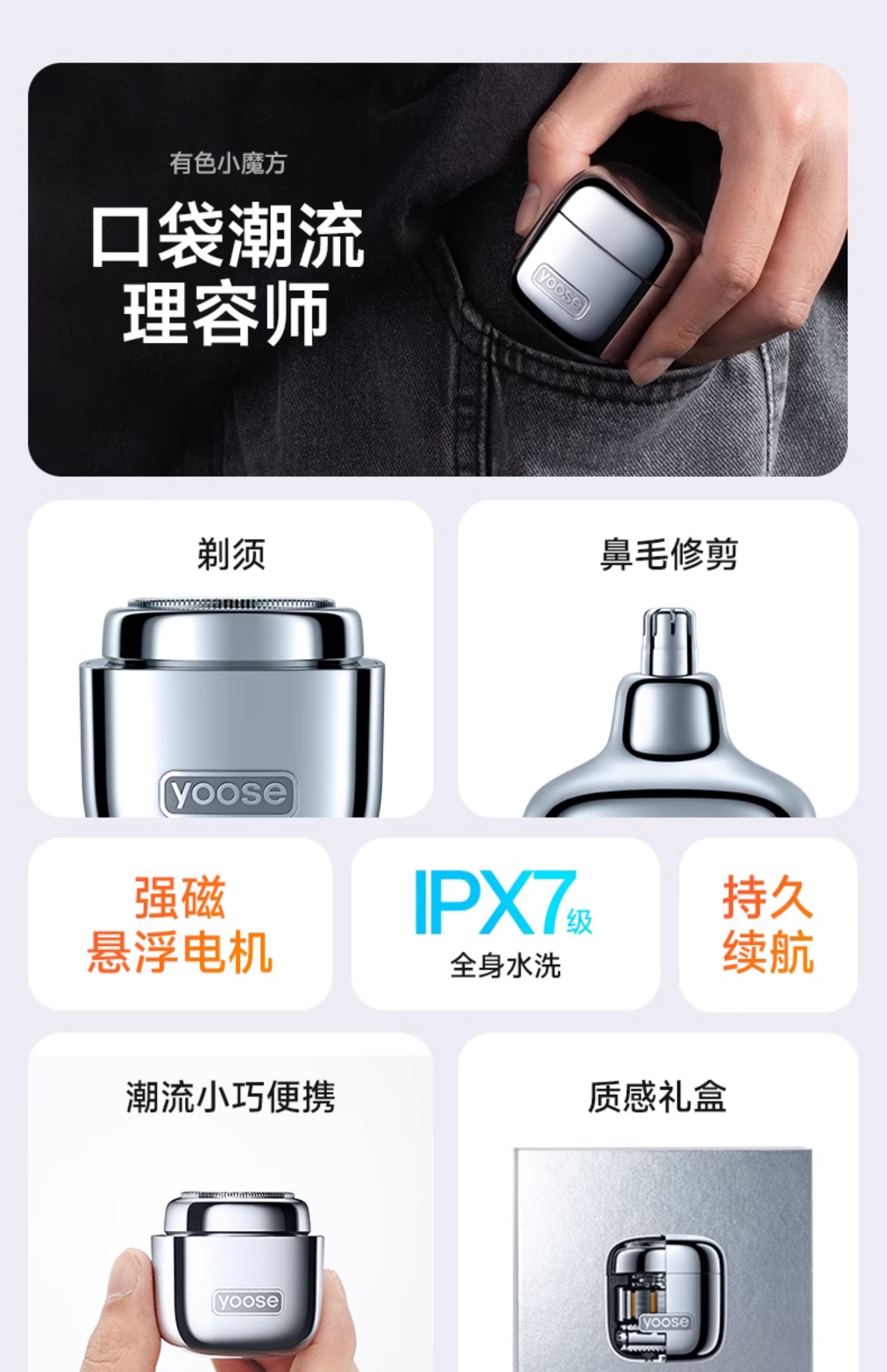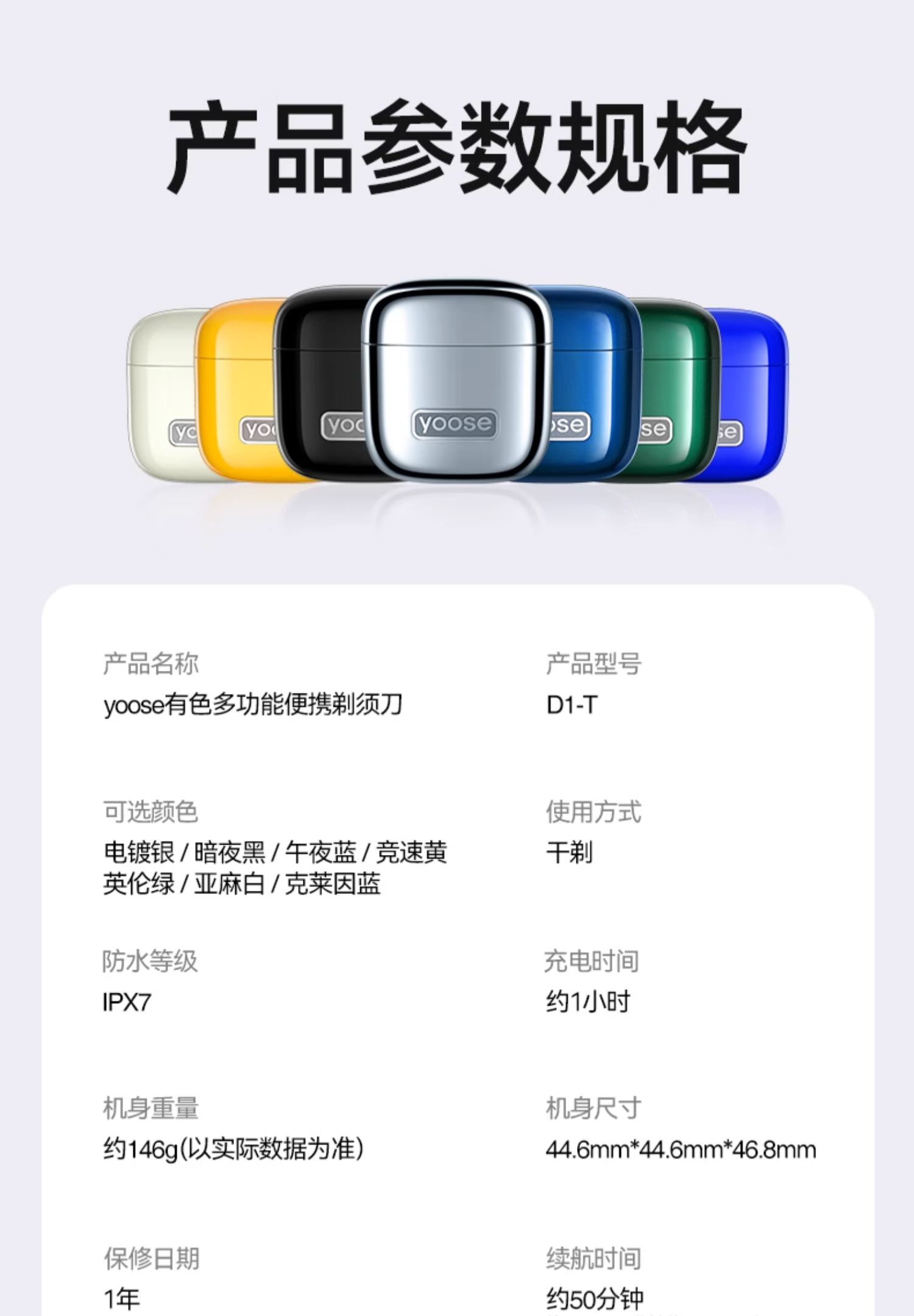 F-YOOSE MINI 有色小魔方D1-T便携剃须刀二合一