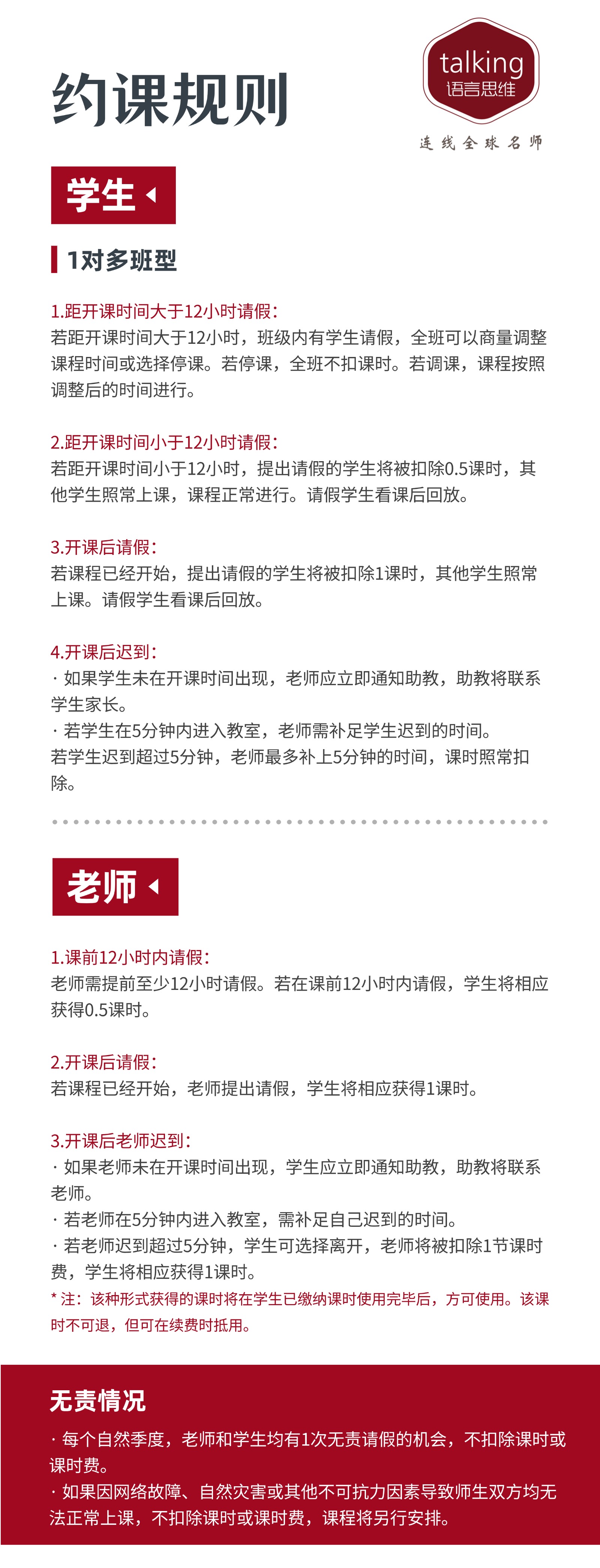 ●后35分钟正式上课:根据前期意向表内容,正式上课定制课。