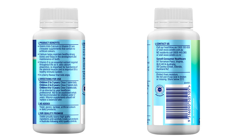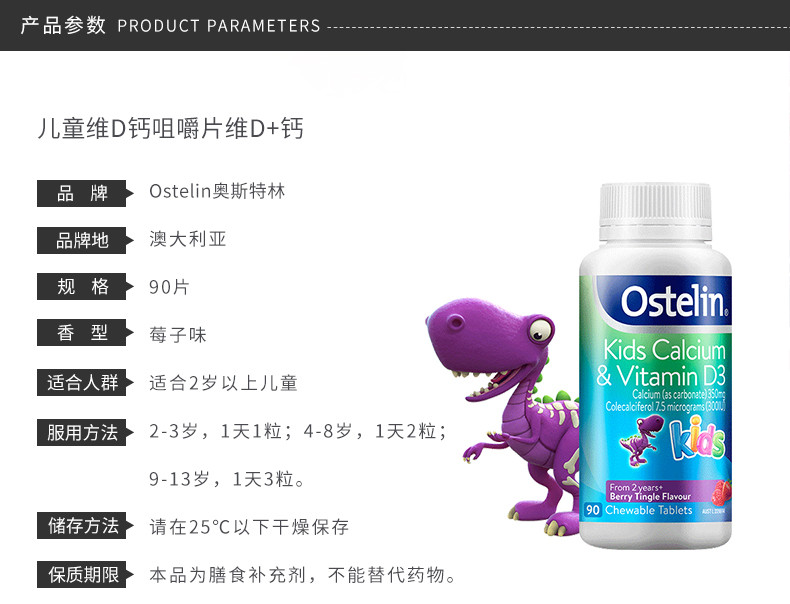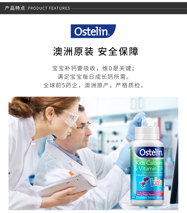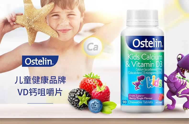 OSTELIN奥斯特林 儿童维生素D钙咀嚼片 2岁以上 90粒 澳大利亚