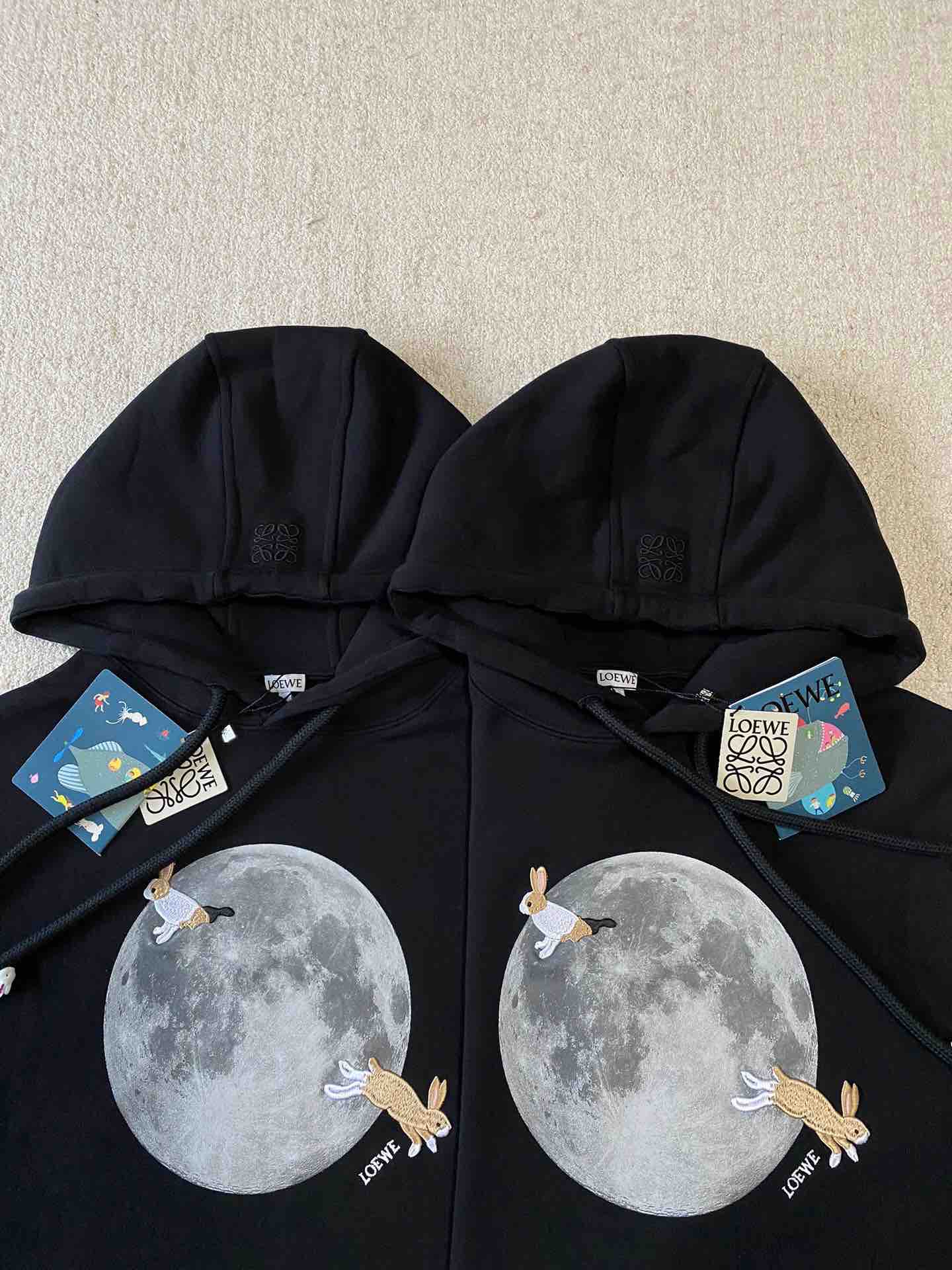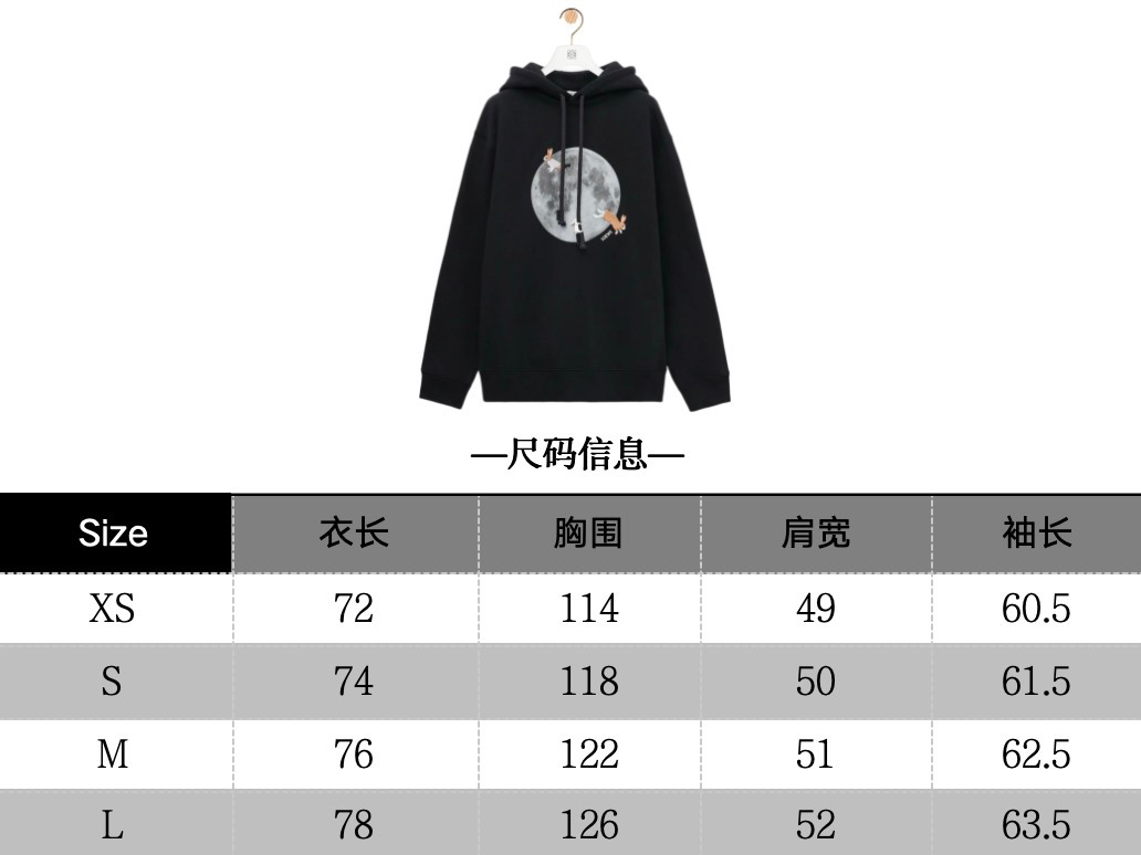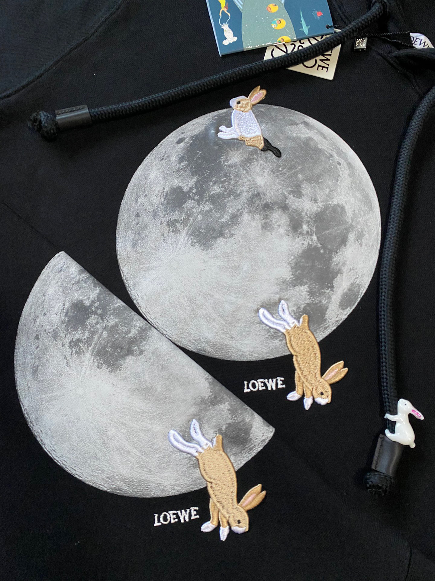 ⚠️原¥10,900购买;轻盈棉质抓绒连帽卫衣、饰有月亮印花、胸前小兔图案刺绣卫衣为合作系列作品、连帽宽松版型、标准长度、罗纹袖口和下摆、抽绳饰有黄铜和珐琅小兔挂饰、以及 Anagram 刺绣