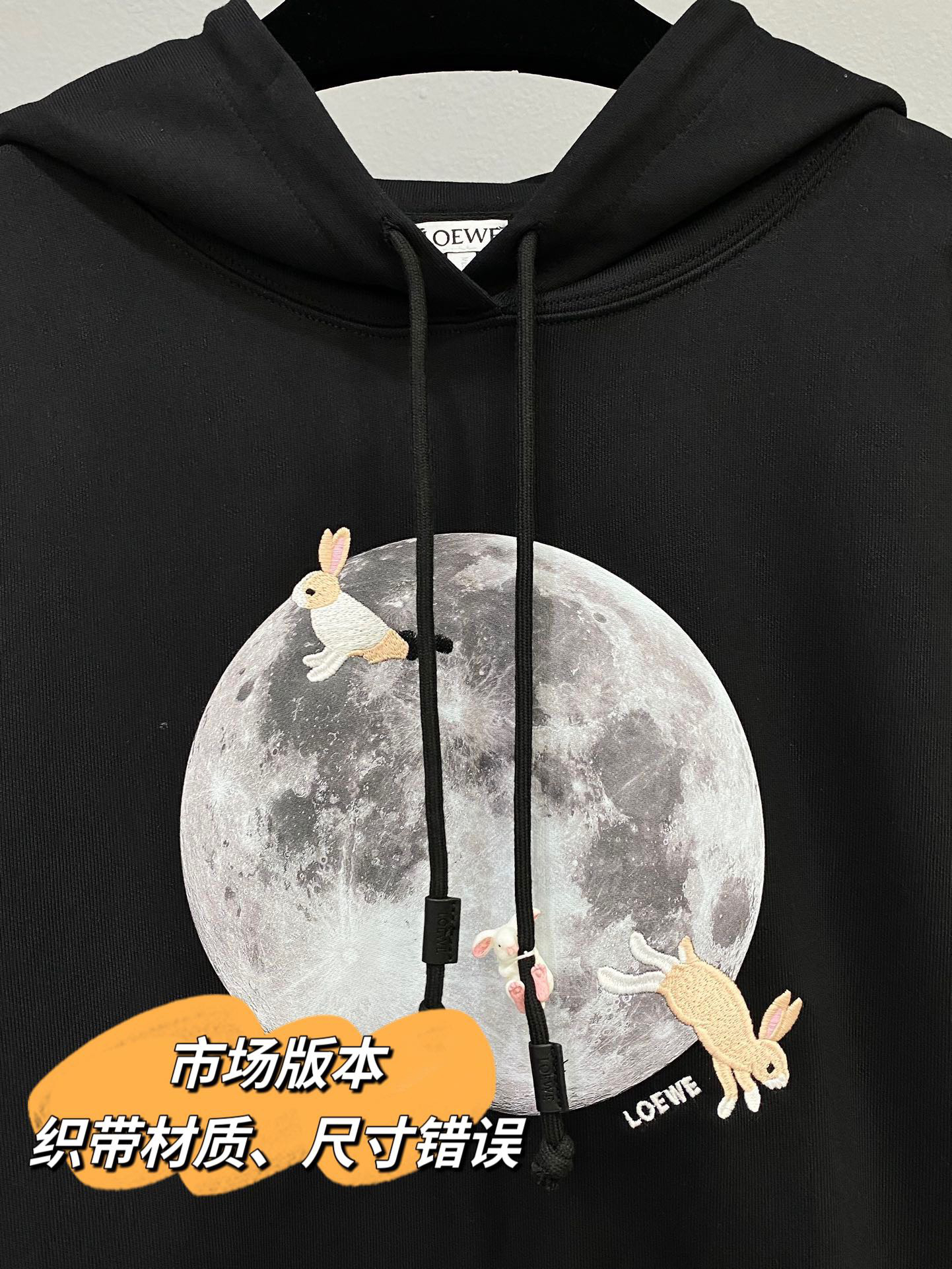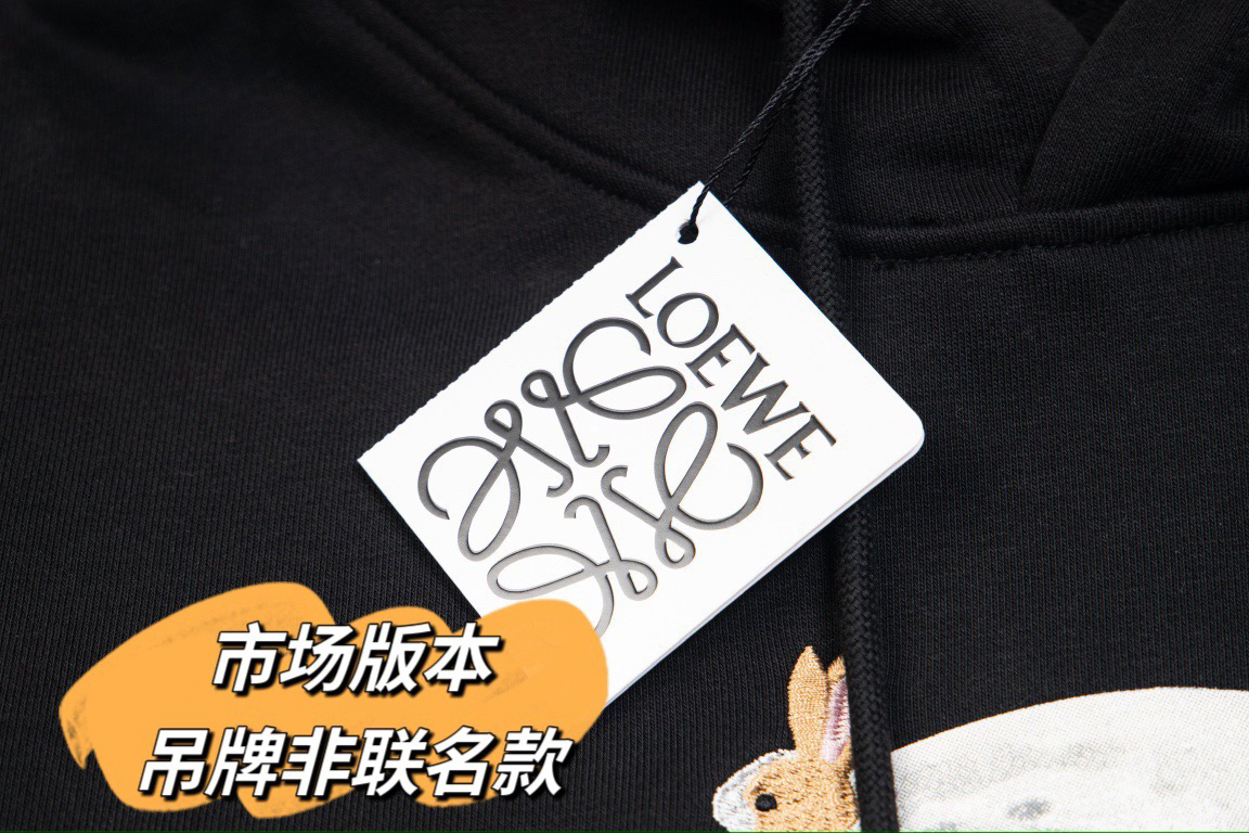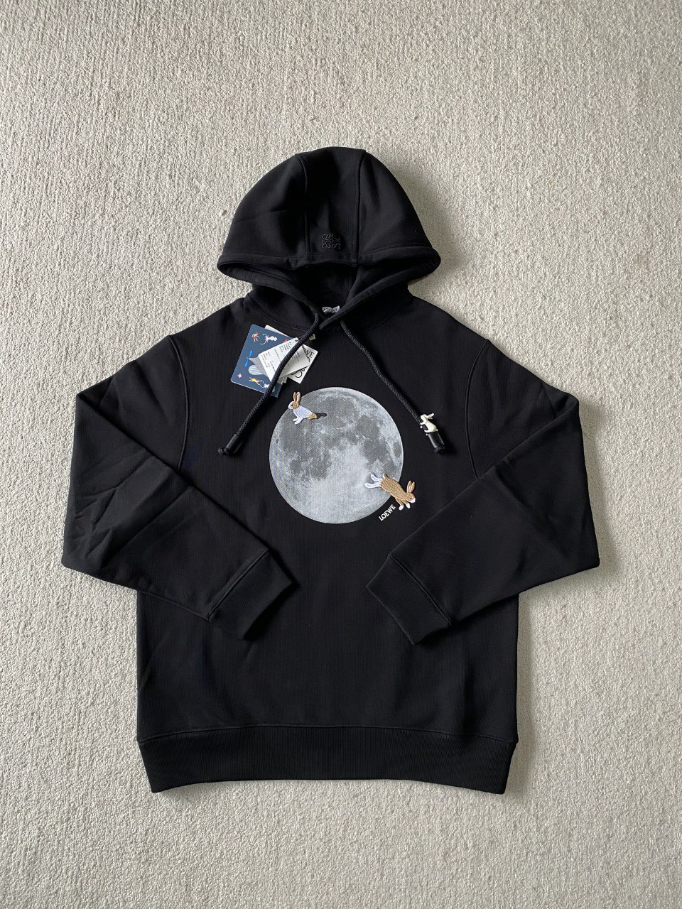 ⚠️原¥10,900购买;轻盈棉质抓绒连帽卫衣、饰有月亮印花、胸前小兔图案刺绣卫衣为合作系列作品、连帽宽松版型、标准长度、罗纹袖口和下摆、抽绳饰有黄铜和珐琅小兔挂饰、以及 Anagram 刺绣