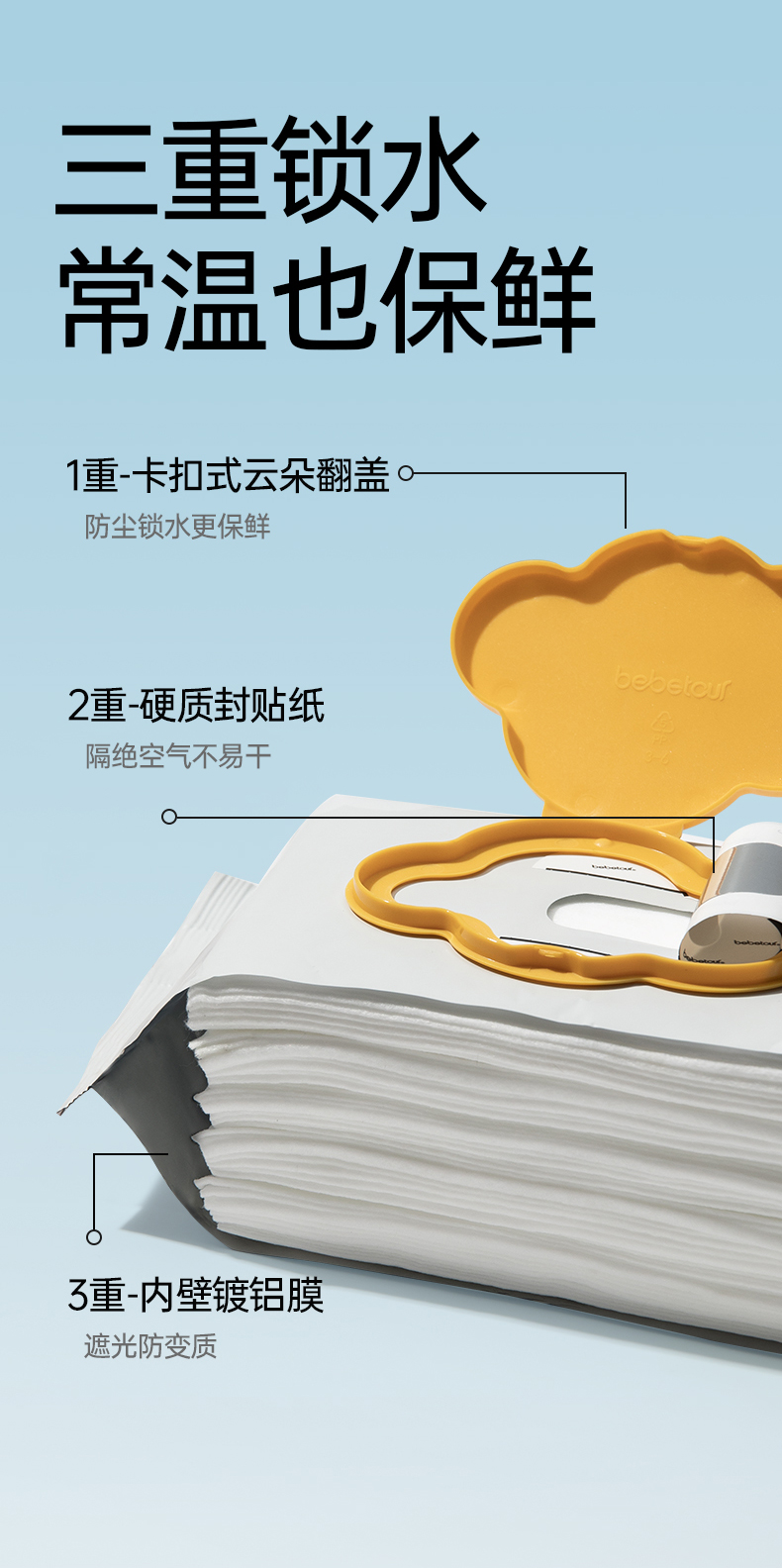 BEBETOUR黄盖 婴儿手口湿巾50克 80片*3包