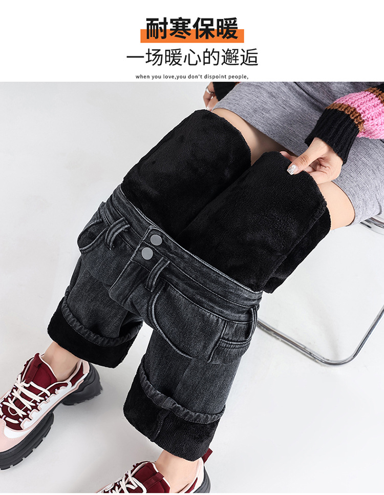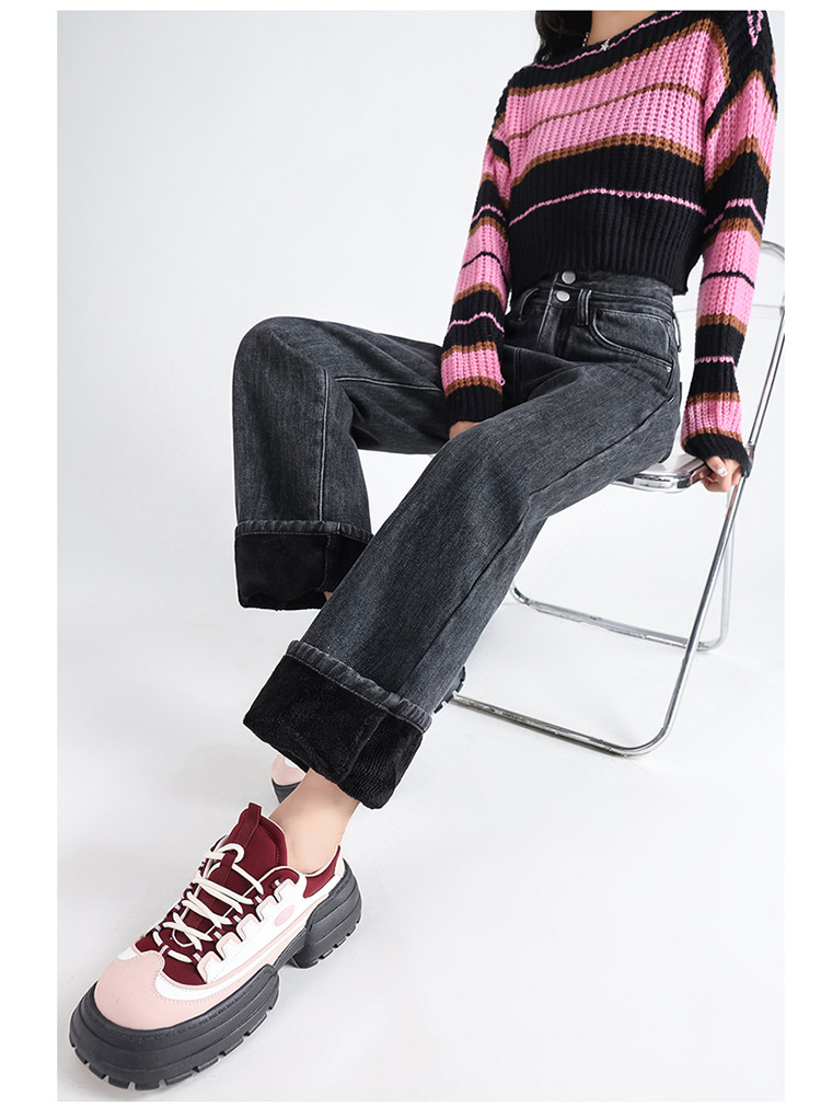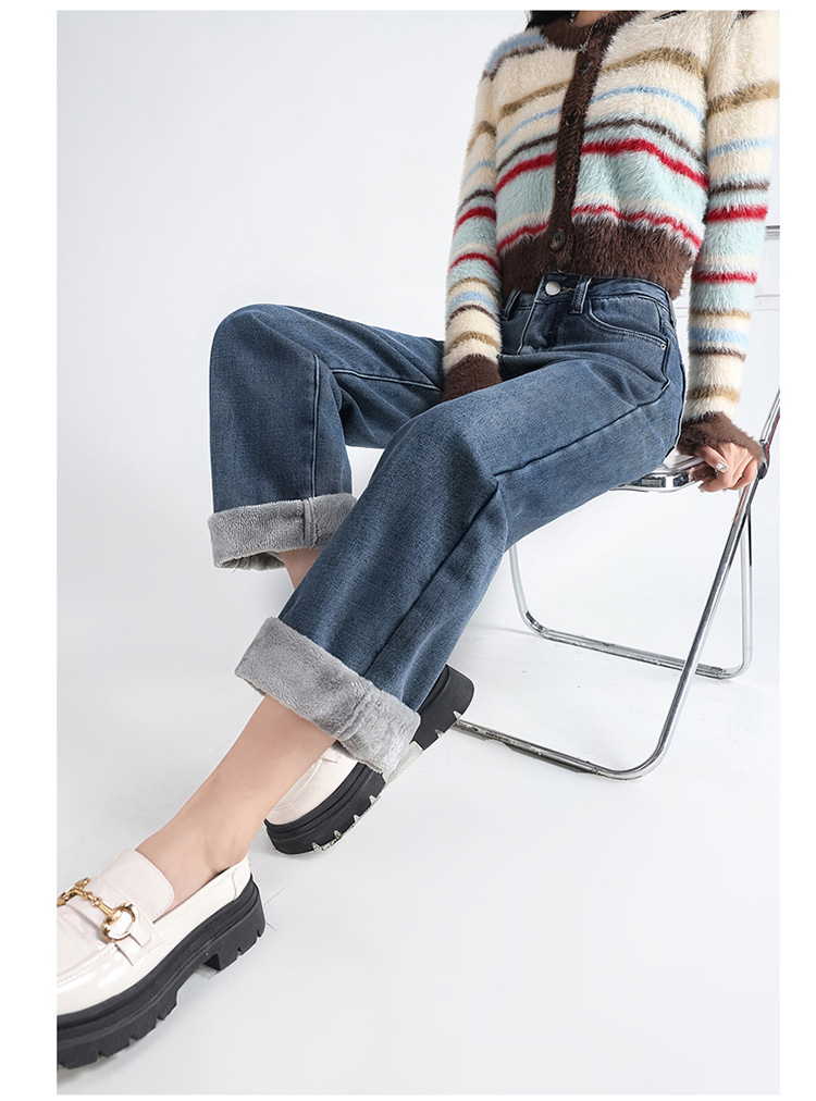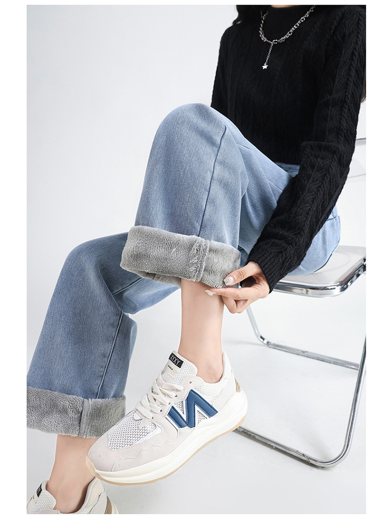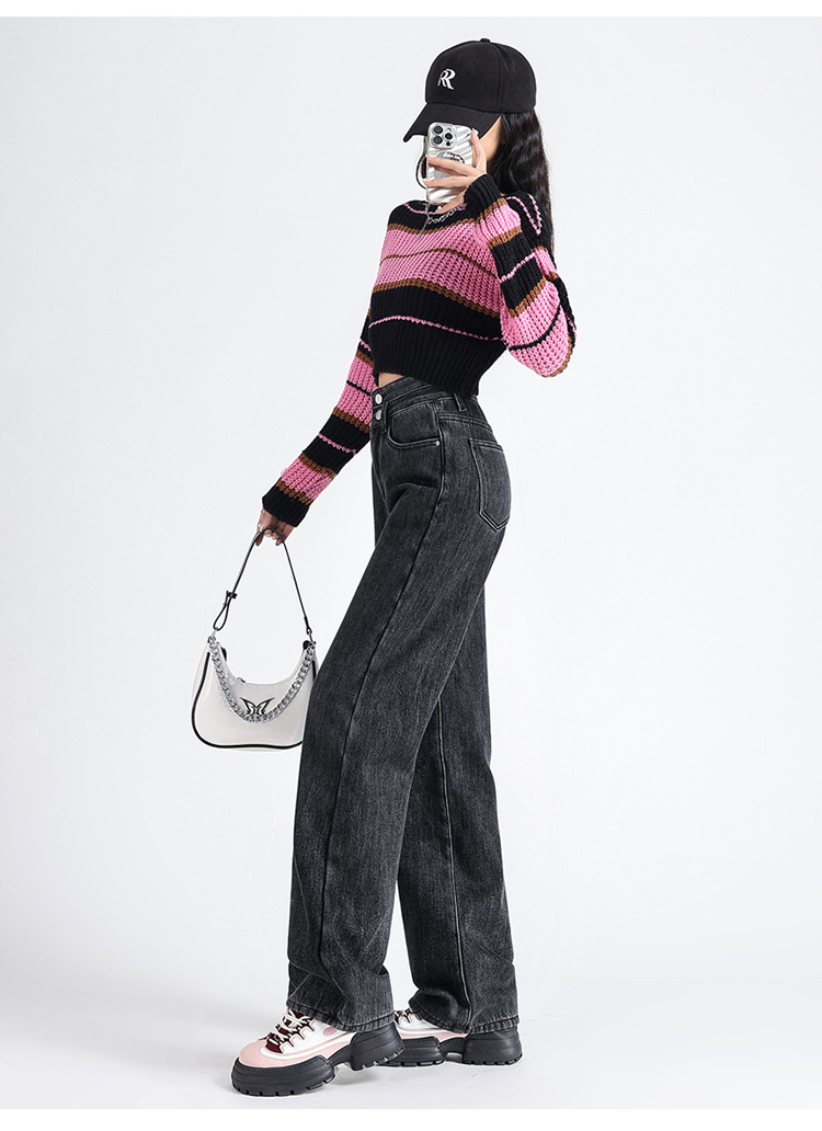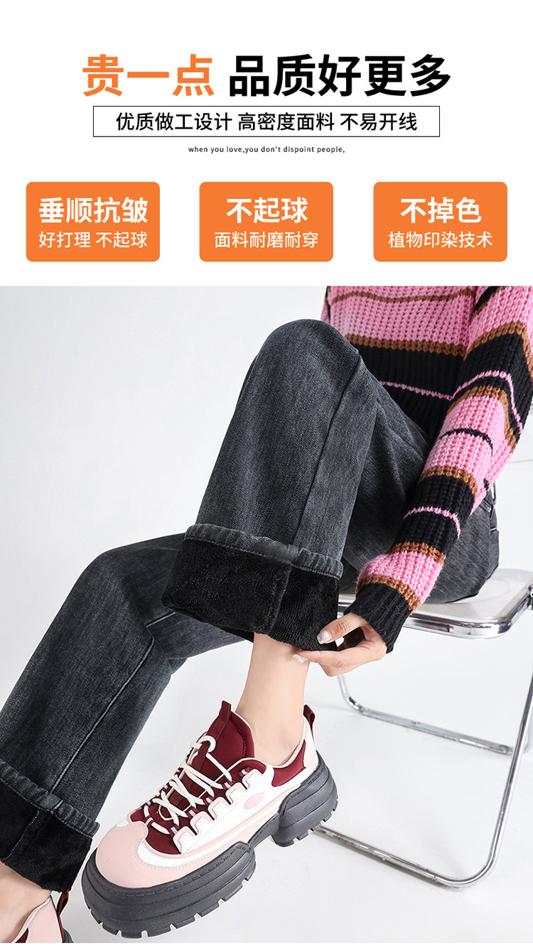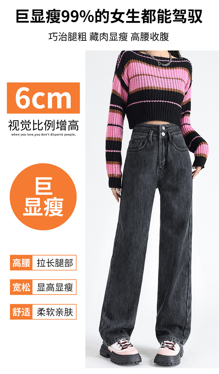 「三色可选!加不加绒两款」双排扣牛仔阔腿裤 加绒牛仔裤女秋冬新款韩版高腰厚款宽松小个子直筒裤下装