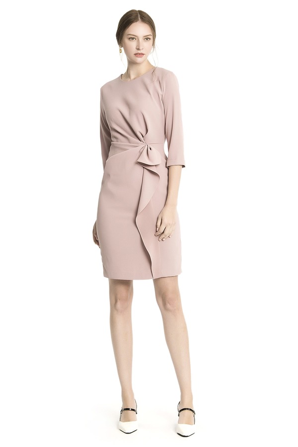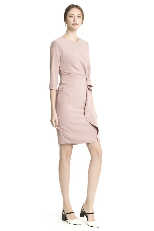 OCTAVIA 粉色褶裥荷叶边饰连衣裙 1606