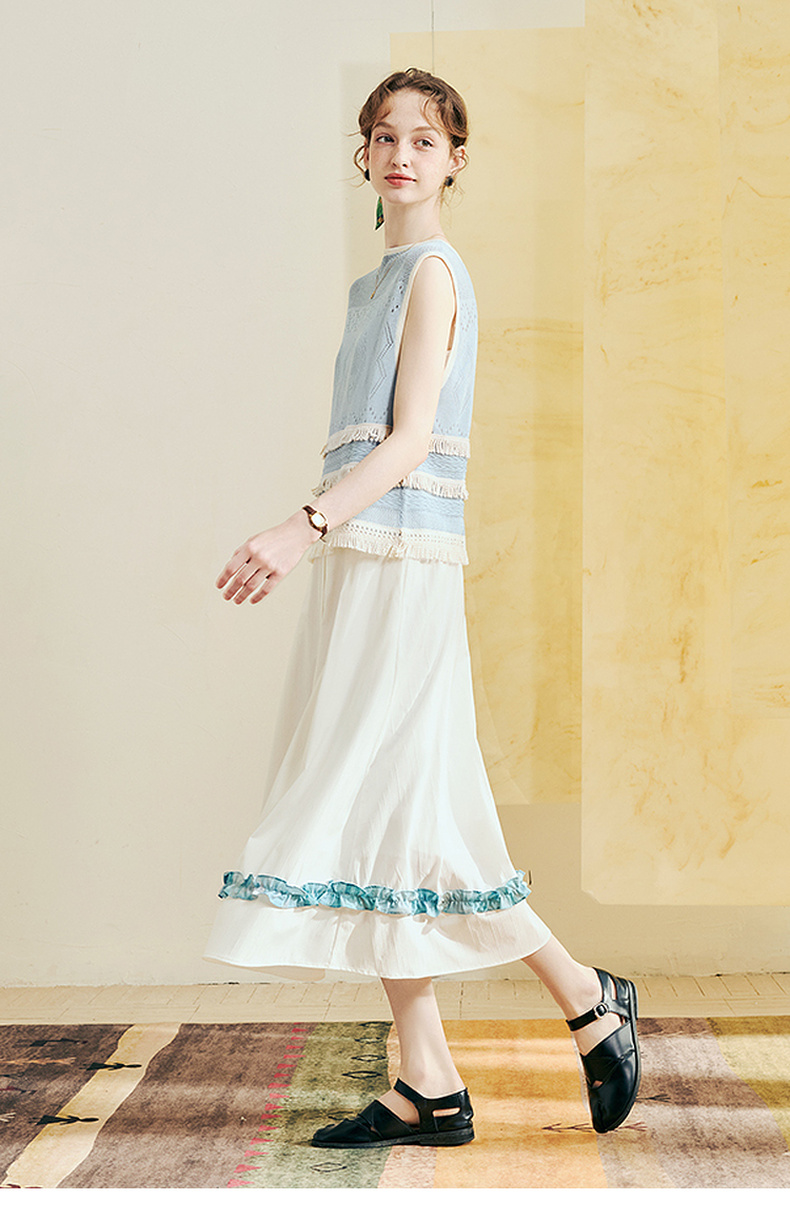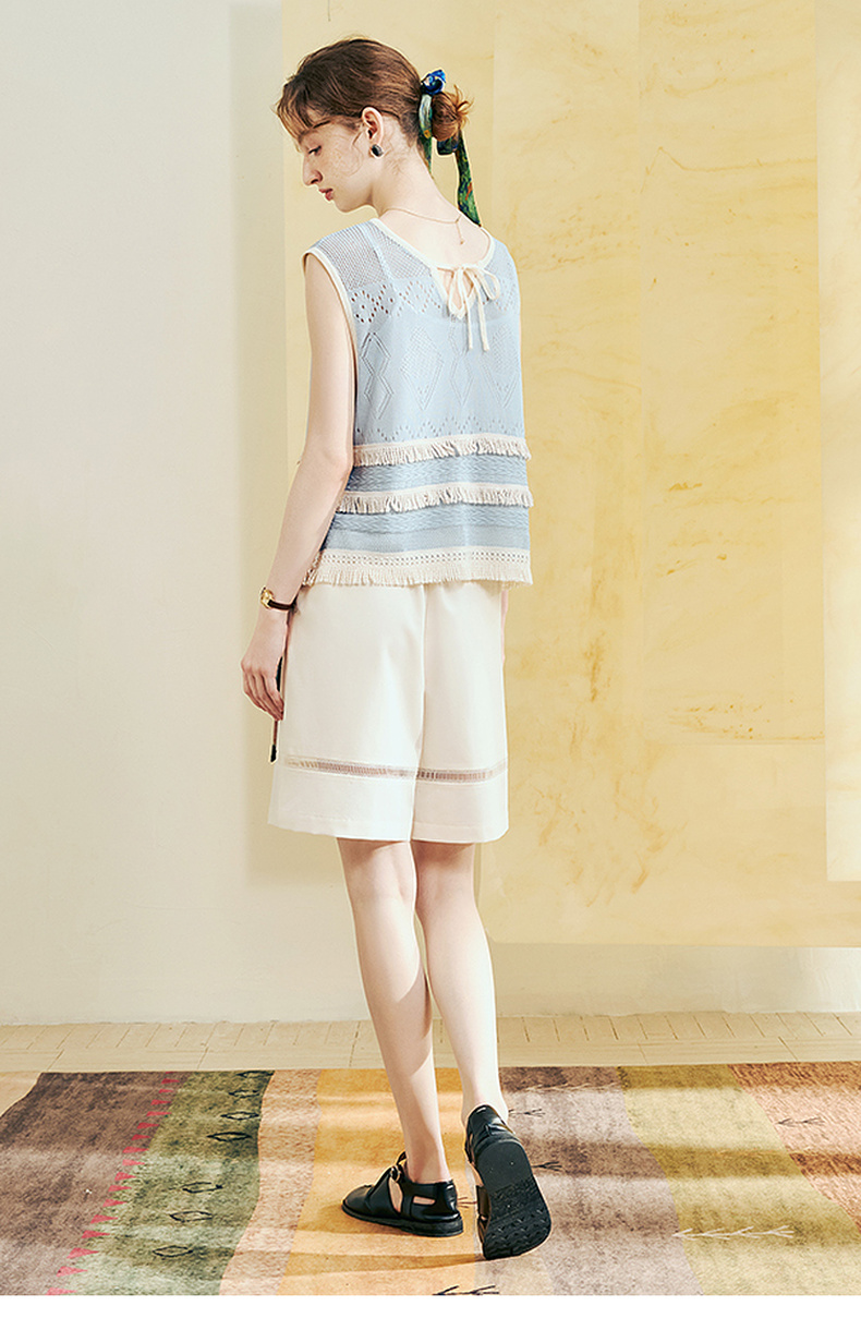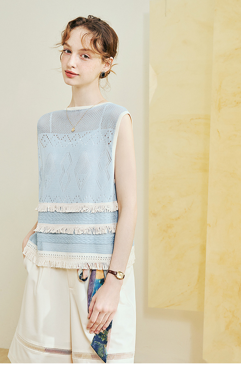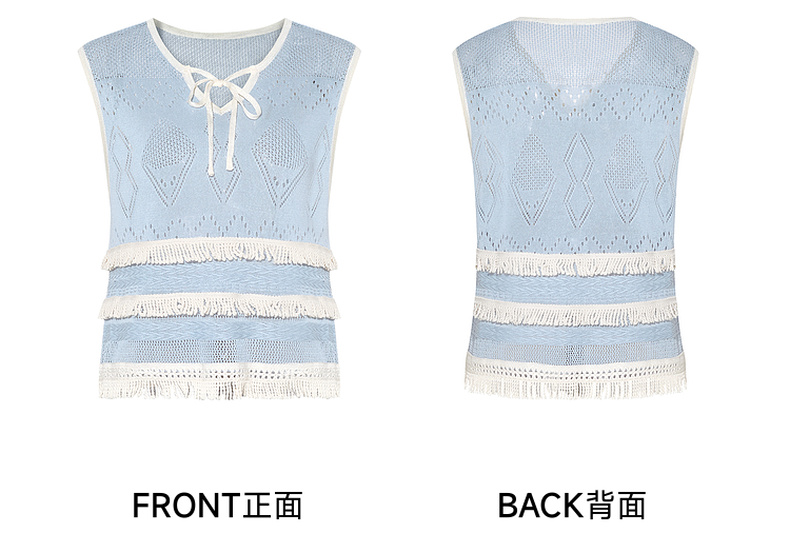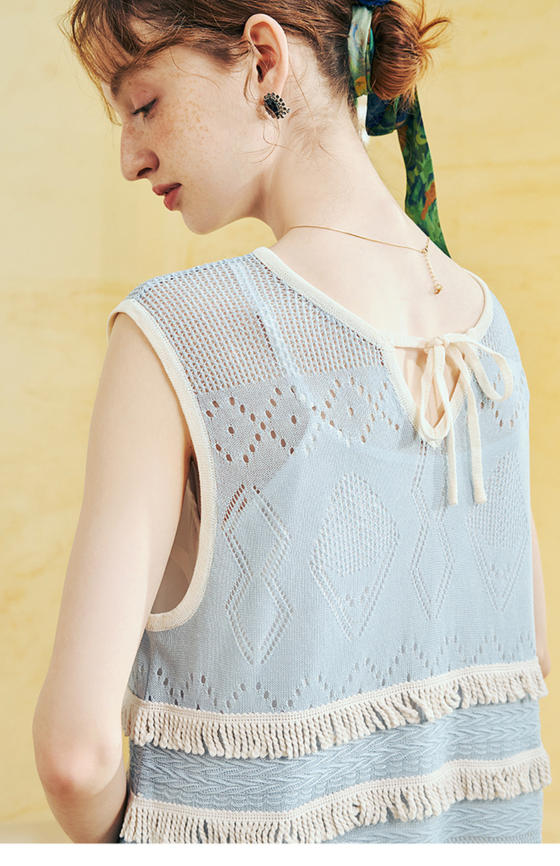 两三事 飘零过海 2025夏季新款时尚流苏装饰镂空无袖针织衫女宽松