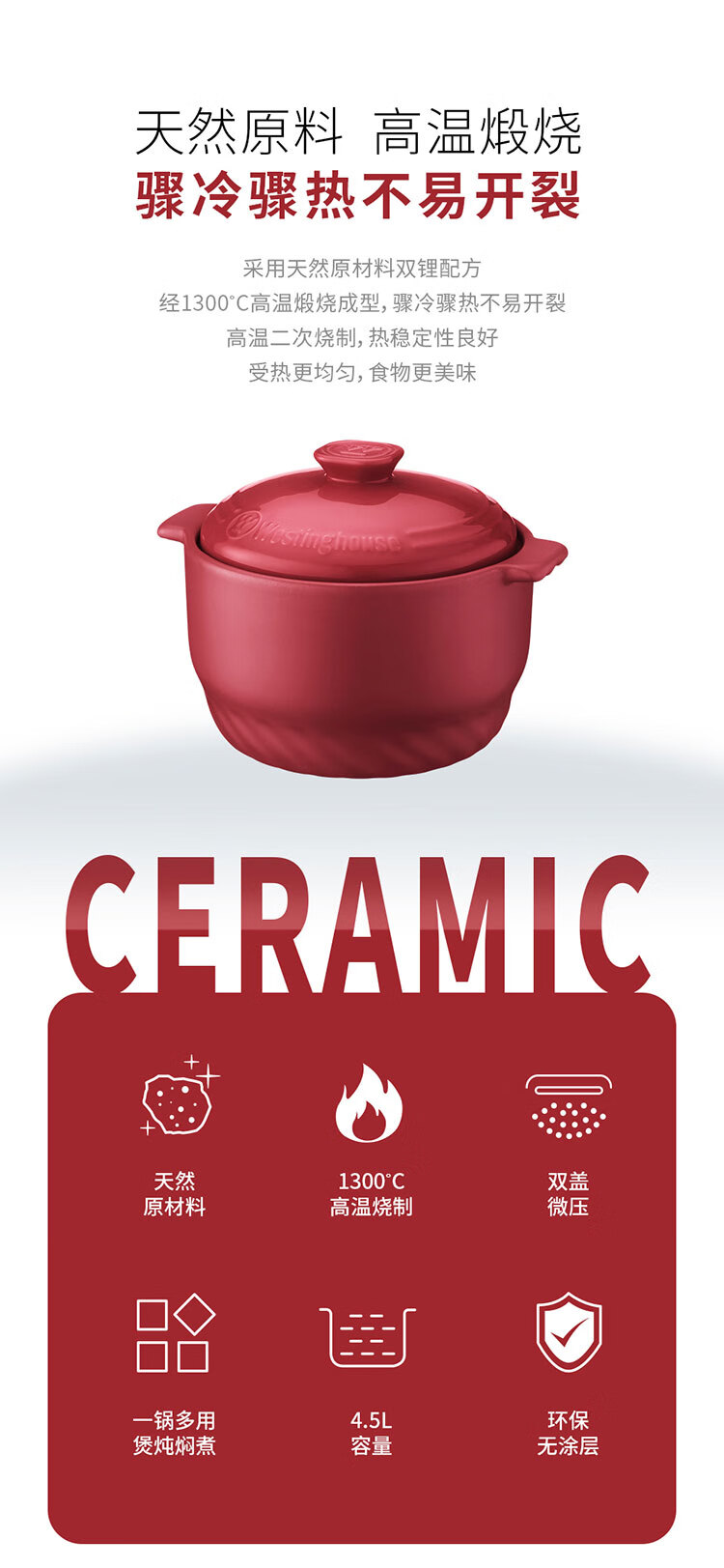 【美国西屋双盖陶瓷砂锅】西屋陶瓷锅 WTG451 家用多功能锅 商品缩略图0 【美国西屋双盖陶瓷砂锅】西屋陶瓷锅 WTG451 家用多功能锅 商品缩略图1 【美国西屋双盖陶瓷砂锅】西屋陶瓷锅 WTG451 家用多功能锅 商品缩略图2 【美国西屋双盖陶瓷砂锅】西屋陶瓷锅 WTG451 家用多功能锅 商品缩略图3 【美国西屋双盖陶瓷砂锅】西屋陶瓷锅 WTG451 家用多功能锅 商品缩略图4 【美国西屋双盖陶瓷砂锅】西屋陶瓷锅 WTG451 家用多功能锅 商品缩略图5 【美国西屋双盖陶瓷砂锅】西屋陶瓷锅 WTG451 家用多功能锅 商品缩略图6 【美国西屋双盖陶瓷砂锅】西屋陶瓷锅 WTG451 家用多功能锅 商品缩略图7 【美国西屋双盖陶瓷砂锅】西屋陶瓷锅 WTG451 家用多功能锅 商品缩略图8