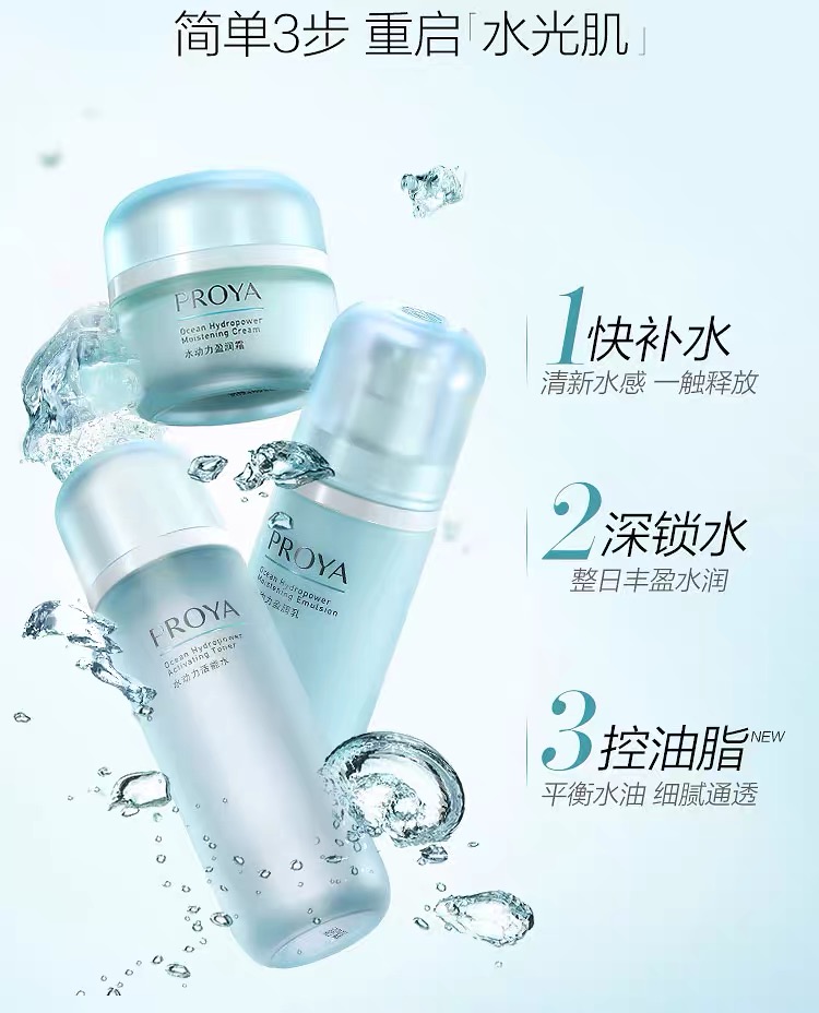 珀莱雅 水动力盈润水乳霜 清爽保湿补水控油三件套