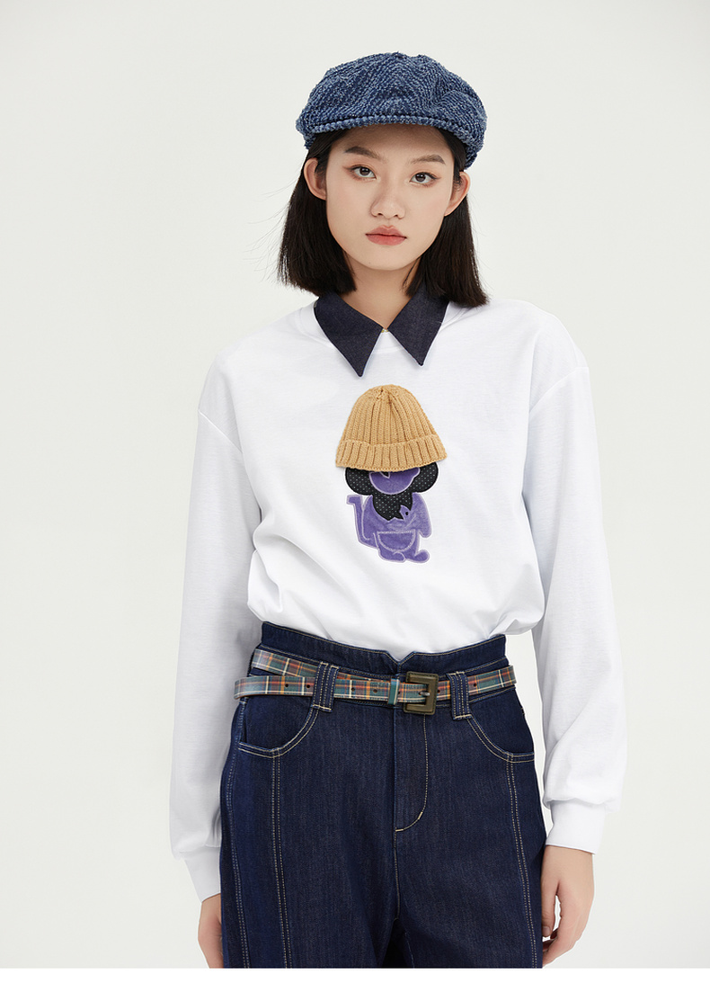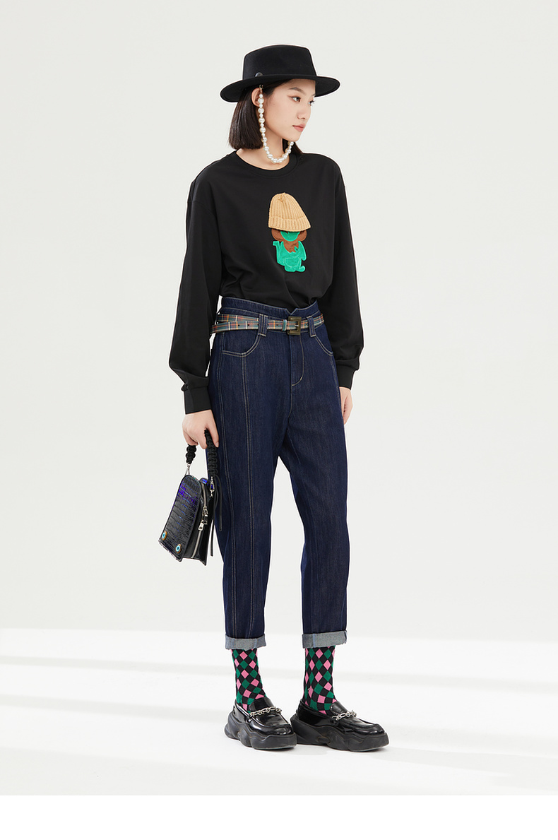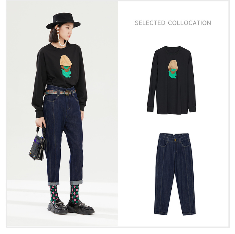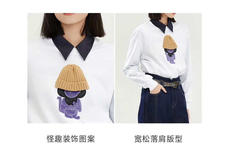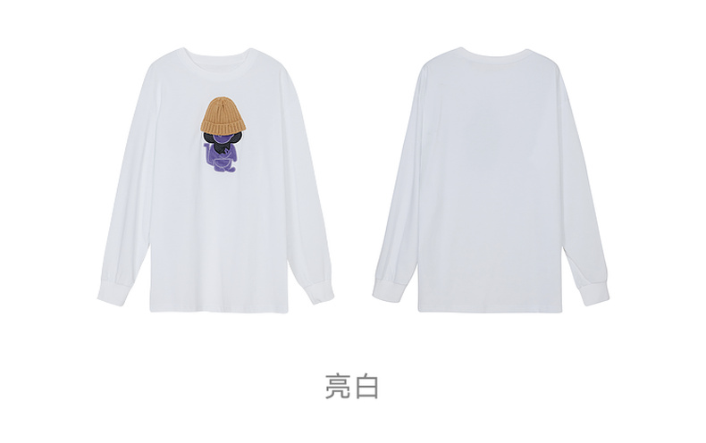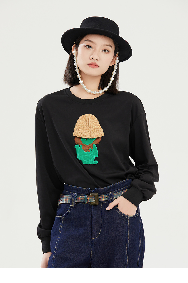 谜底毛巾绣圆领T恤长袖女2023秋季新款时尚百搭绣花卫衣239MV7340