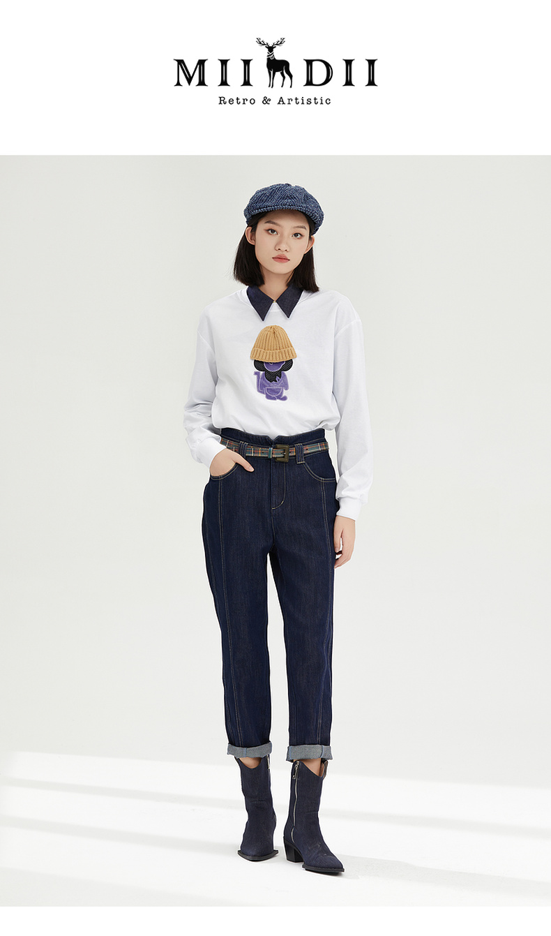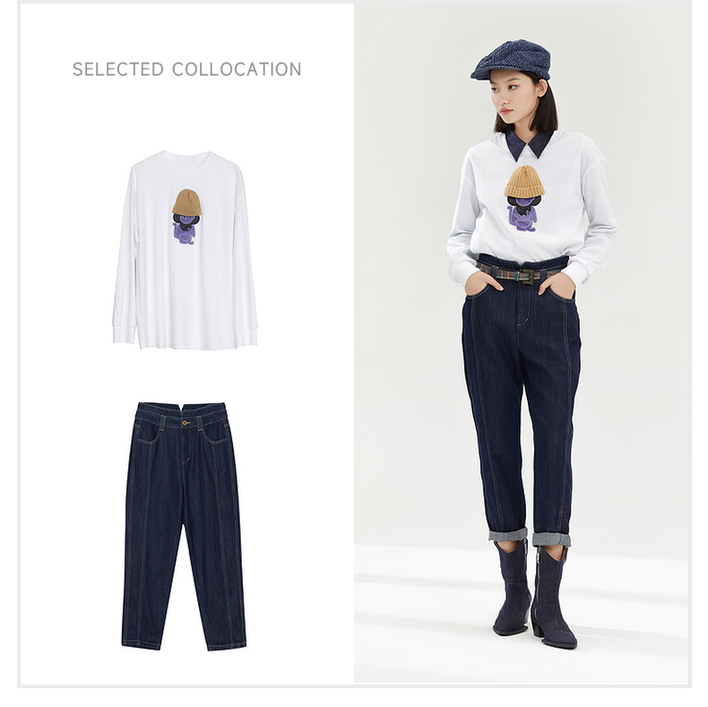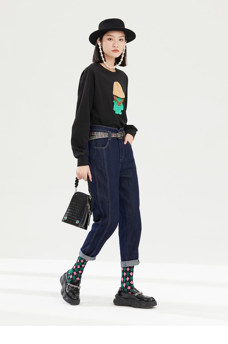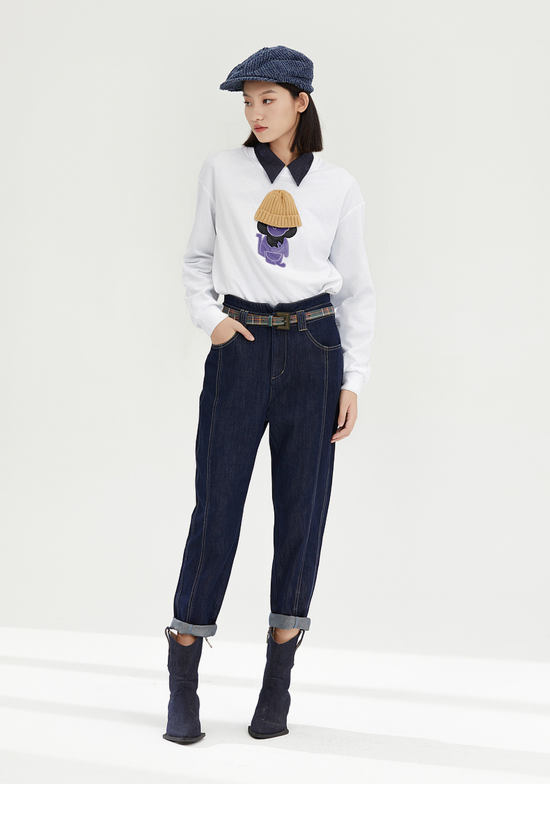 谜底毛巾绣圆领T恤长袖女2023秋季新款时尚百搭绣花卫衣239MV7340